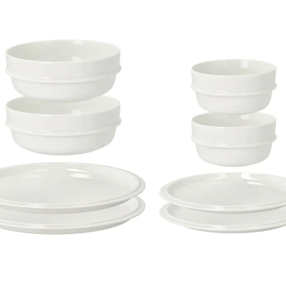 Sættet indeholder to 20 cm tallerkener, to 24 cm tallerkener, to 12 cm müsliskåle og to 16 cm poke-/ramenskåle.