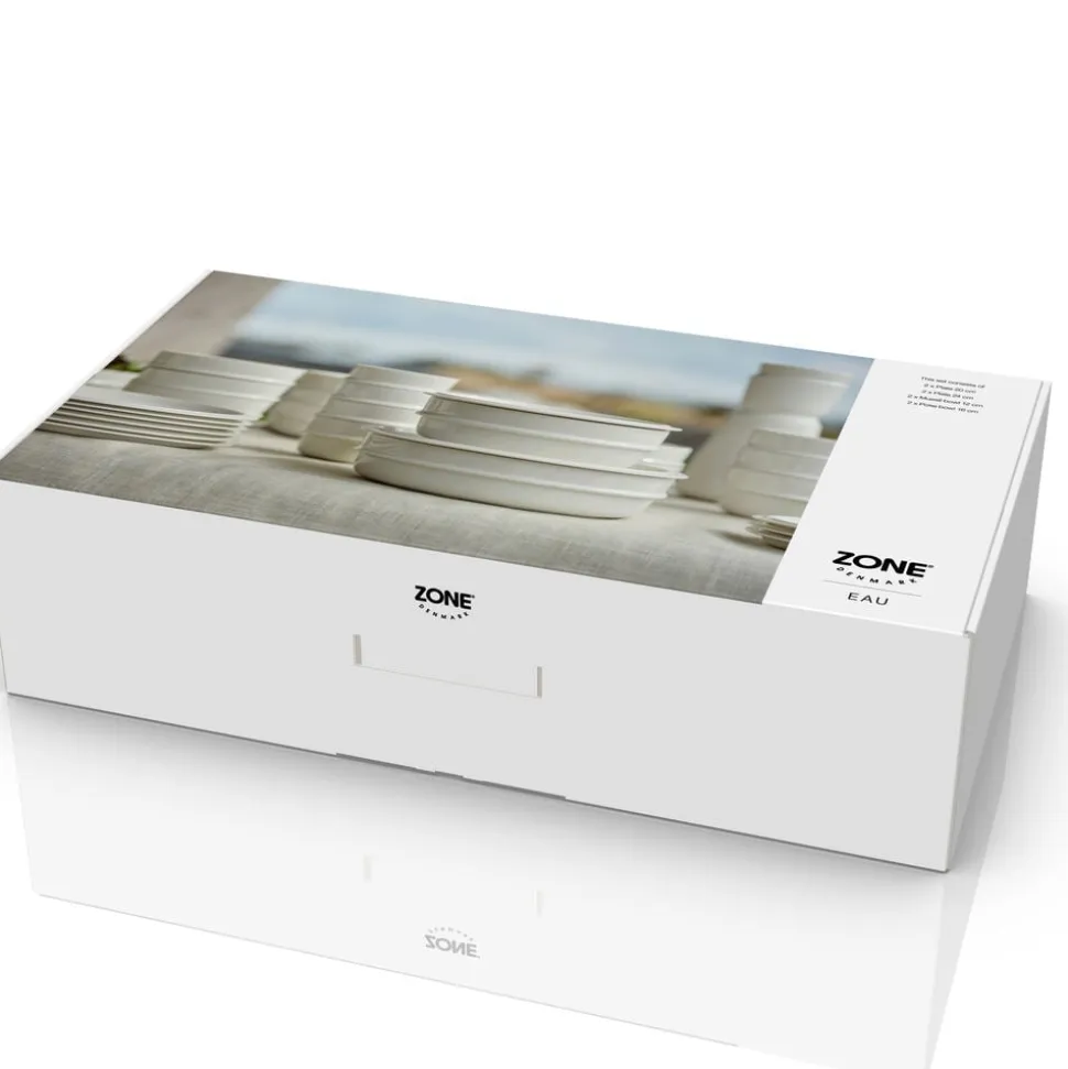 Serviceserien Eau er et godt bud på en moderne klassiker. Udtrykket enkelt og imødekommende, og alt overflødigt er skåret væk. Du kan stable kopper, skåle og tallerkener sikkert, hvilket selvsagt letter borddækning og afrydning, men også optimerer pladsen i skabet. Desuden kan tallerkenerne fungere som låg til skålene. Samtidig betyder det, at du kan lave uhøjtidelige og charmerende buffet-opstillinger som i Sydeuropa, hvor tallerkenerne stakkes til høflig og hyggelig selvbetjening. Uanset om du inviterer på tapas i hjemmet, kagebuffet i haven eller spontan nabomiddag på villavejen. EAU-serien består af tallerkener og skåle i forskellige størrelser samt kop og karaffel. Porcelænet i serien er udført i den klassiske og lækre nuance offwhite.