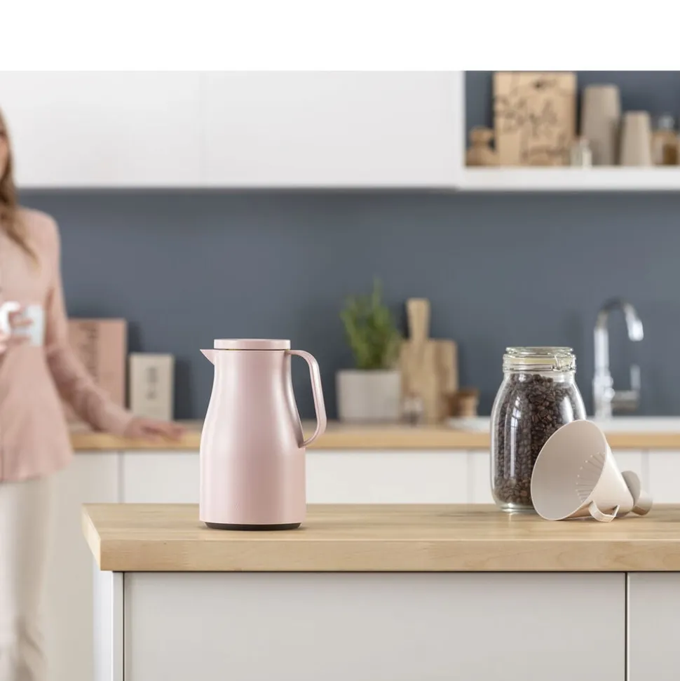 Alfi Econscious kombinerer funktionalitet med elegant design. Med en kapacitet på 1 liter holder termokanden dine drikkevarer varme i op til 12 timer og kolde i op til 24 timer. Termokanden er udstyret med en indsats af hærdet glas, et lækagesikkert skruelåg og et ergonomisk håndtag, hvilket gør den let at bruge. Den er fremstillet af 94 % bioplast, lavet af biopolymerer, som stammer fra rester af sukkerrørspresning. Det er resterne fra trin 3-5 i processen, hvor materialet, der ikke kan anvendes til fødevarer, omdannes til bioplast. Designet af PEARL CREATIVE.