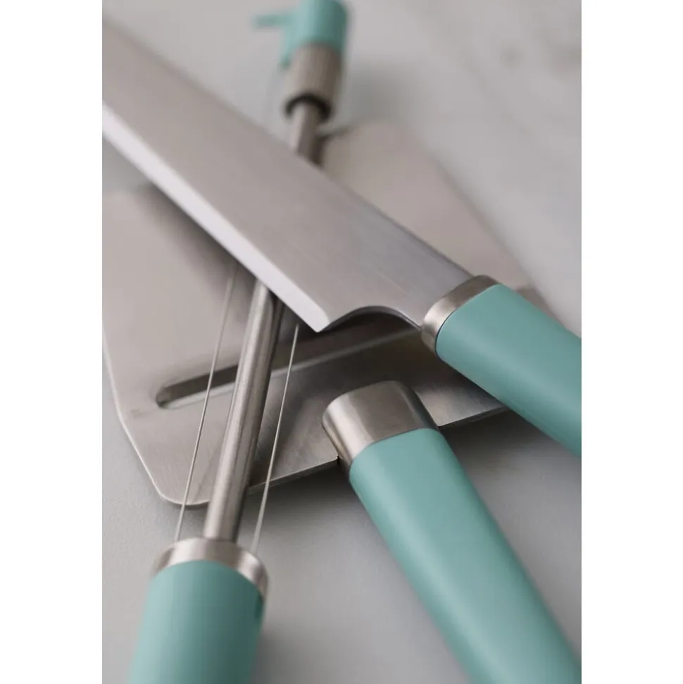 De gedigne materialer, plast og rustfrit stål, komplementerer hinanden smukt og giver redskaberne en tyngde, der skaber en god balance i hånden. Det rustfri stål er af høj kvalitet, der sikrer både et skarpt skær og nem rengøring. Redskaberne fås i en række smukke farver, der gør dem til favoritter både i køkkenet og på spisebordet. 5 års garanti.