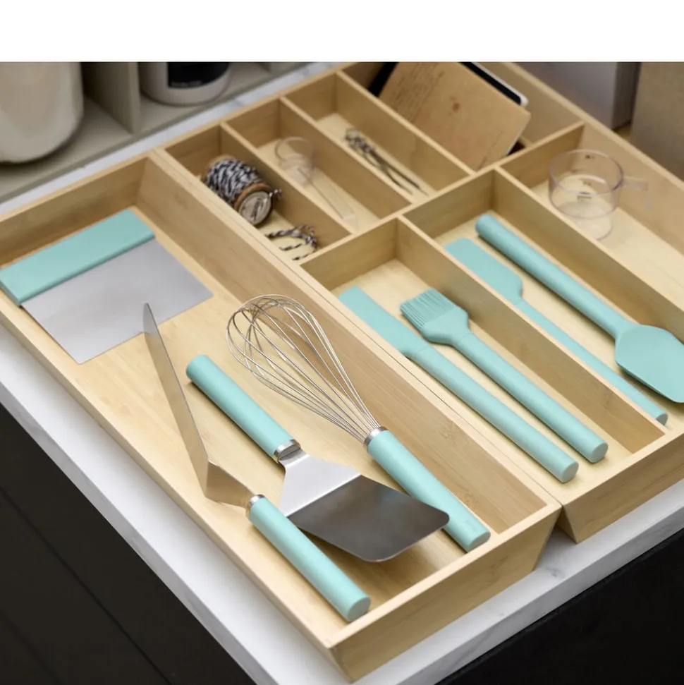 De gedigne materialer, plast og rustfrit stål, komplementerer hinanden smukt og giver redskaberne en tyngde, der skaber en god balance i hånden. Det rustfri stål er af høj kvalitet, der sikrer både skarphed og nem rengøring. Redskaberne fås i en række smukke farver, der gør dem til favoritter både i køkkenet og på spisebordet.