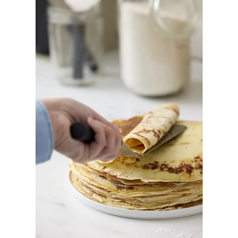 Emma stålpalet har et langt, smalt blad med knæk, som gør den perfekt til at vende pandekager, smøre glasur og meget mere. Den er et køkkenredskab, du vil gribe igen og igen og nyde foreningen af stil og funktionalitet. Nem at rengøre i opvaskemaskinen.