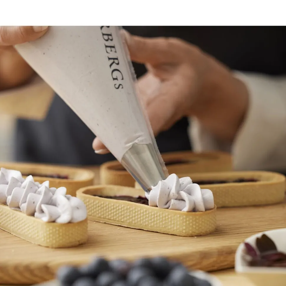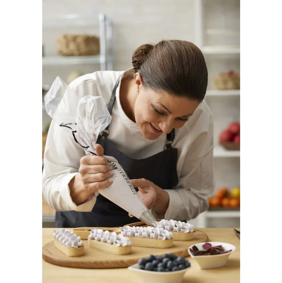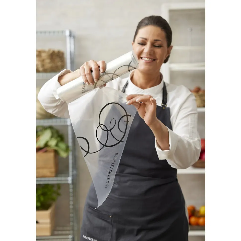 Hygiejniske engangssprøjteposer i kraftig, professionel kvalitet til både det søde og det salte køkken. Anvend dem til fx flødeskum, cremer og mousser og opnå et flottere resultat, da det er meget nemmere at styre mængden fra en sprøjtepose end med en ske. Klip et passende stort hul til de tyller du eventuelt ønsker at anvende eller anvend dem uden tylle i.