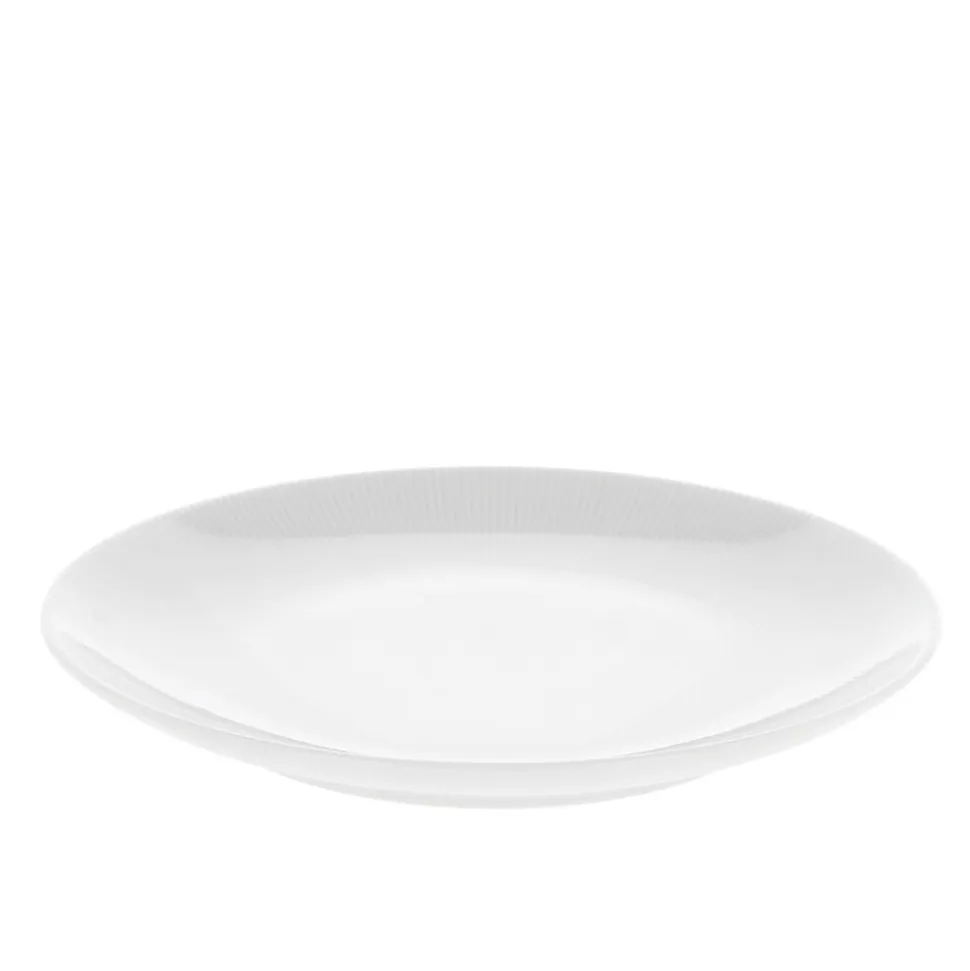 Eventail Coupe tallerken, 21 cm. Med let buet kant, der giver plads til at præsentere maden på en stilfuld måde. Træd ind i en fortryllende verden med Eventail – et betagende stel prydet af et forførende mønster, der leder tankerne hen på elegante vifter. Med sin legende og sofistikerede udstråling tilføjer Eventail en sublim æstetik til dit måltid. Dette sande kunstværk hæver din spiseoplevelse til nye højder.
