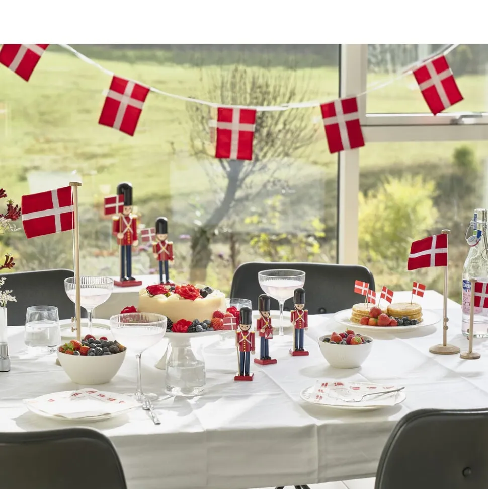 Sæt flag på bordet, så alle kan se, at der er noget at fejre. Den 18 cm høje flagstang er fremstillet i egetræ og har et dansk flag i bomuld, der måler 7,5 x 5 cm. Basen har en diameter på 4,5 cm, hvorunder du finder et fint udskåret logo.