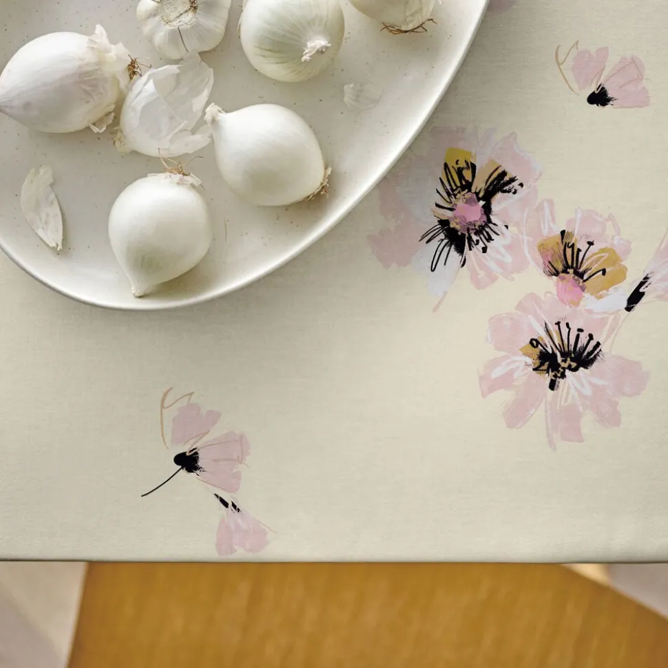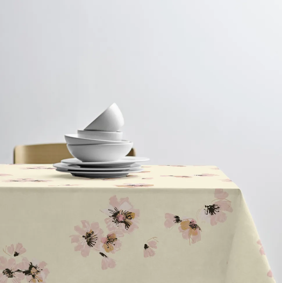 Skab et kunstnerisk og iøjnefaldende udtryk med Flora, et dristigt blomstermønster skabt af udtryksfulde penselstrøg. Dugen gør borddækningen livlig og stilfuld med den unikke kombination af smukke blomster og skønne farver.