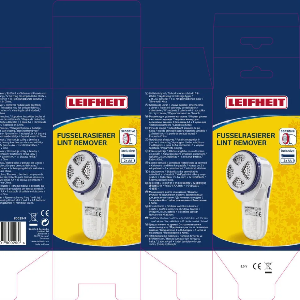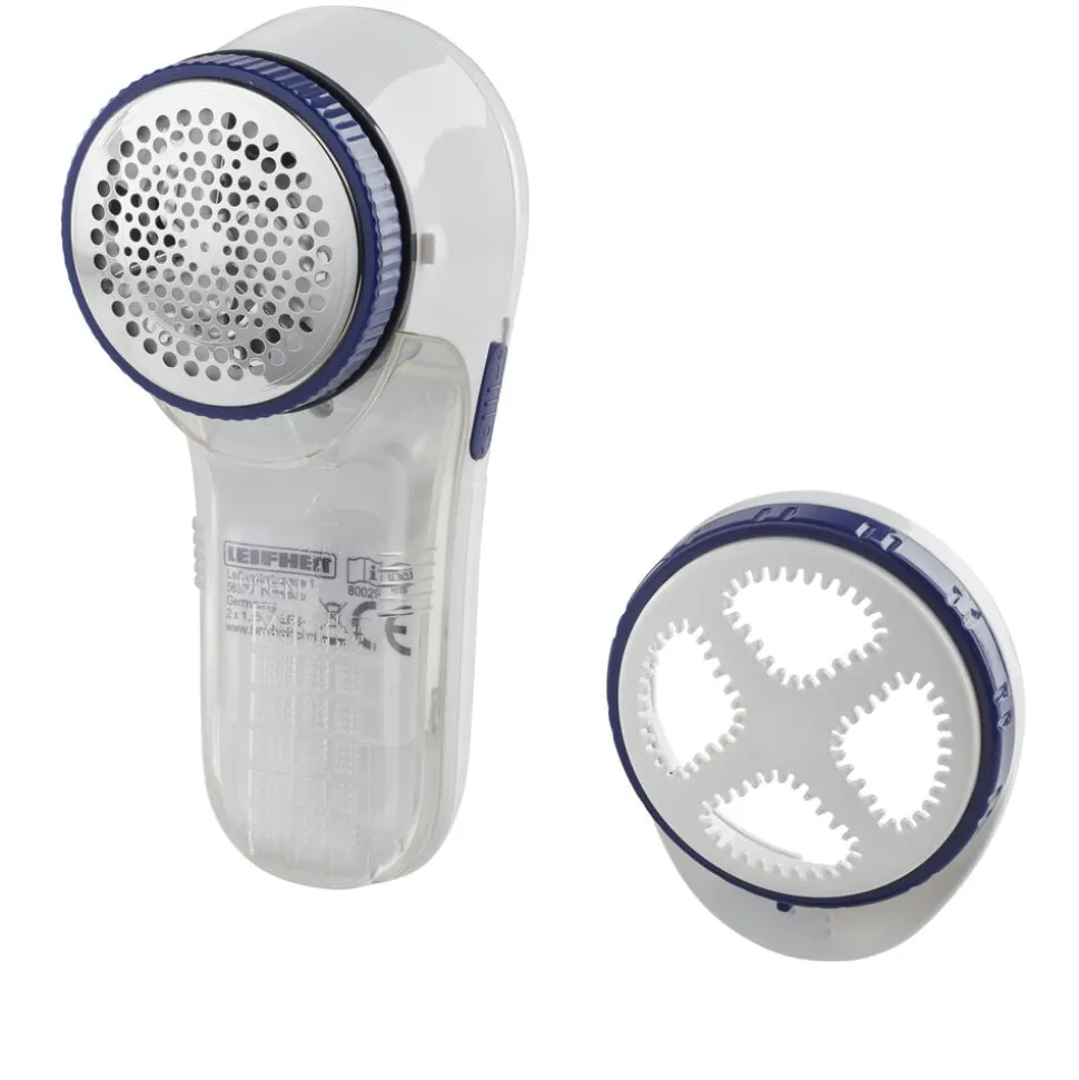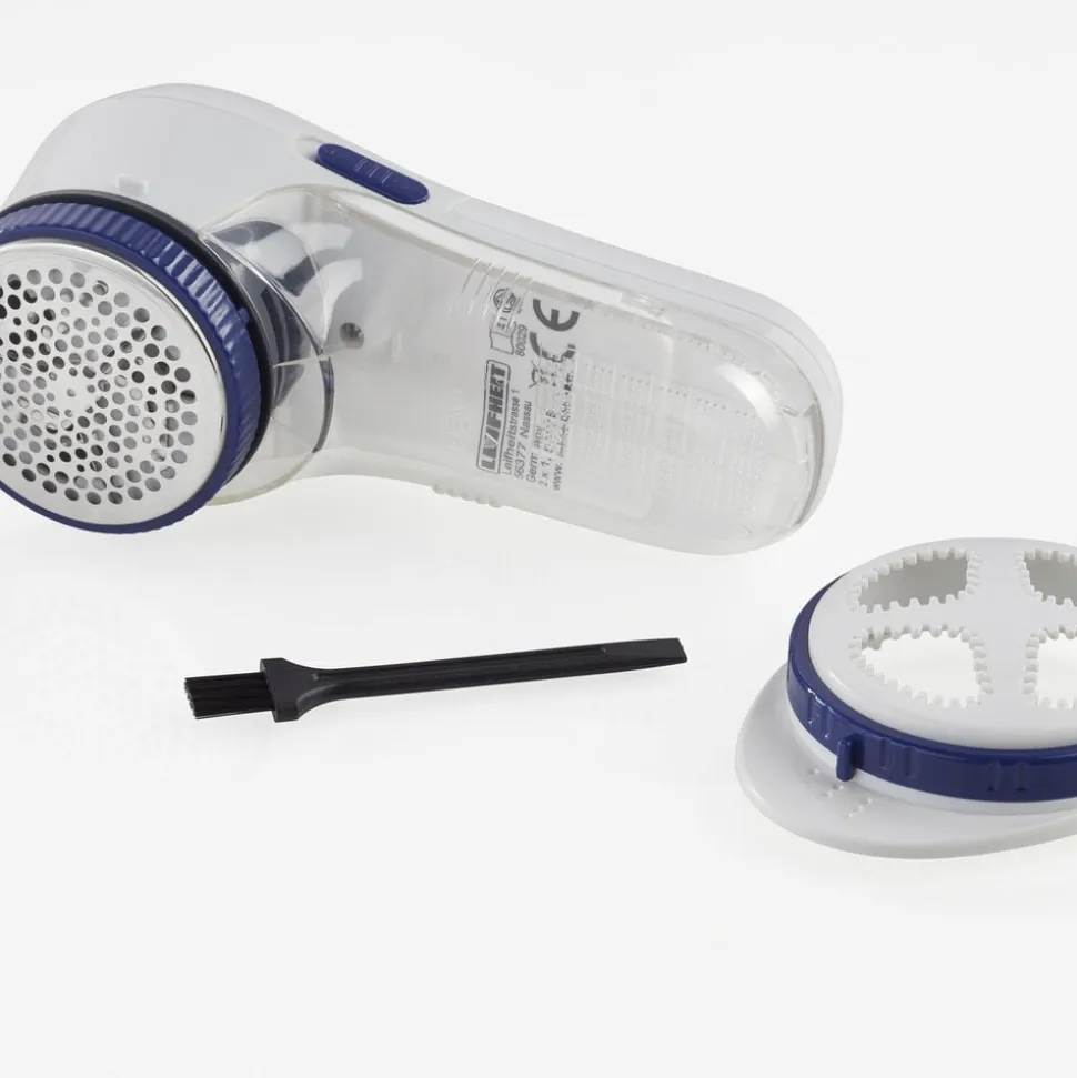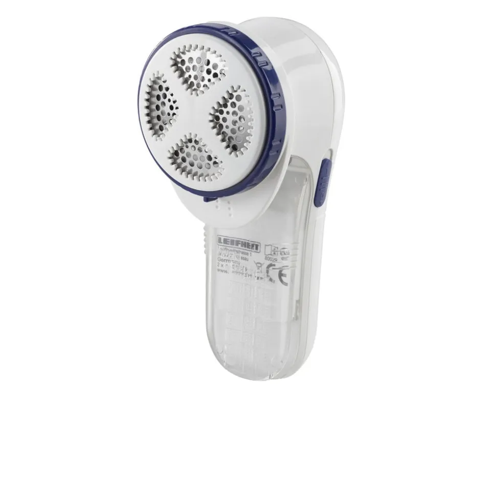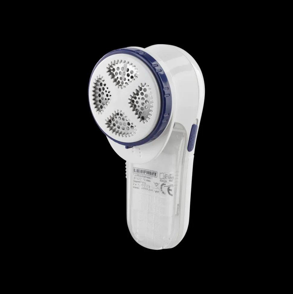 Roterende knivblade af rustfrit stål med beskyttelsesdæksel, der kan justeres i tre højder, så fnugfjerneren kan bruges på alle materialer, også det sarteste tøj. Rensebørste og 2 x AA-batterier medfølger.
