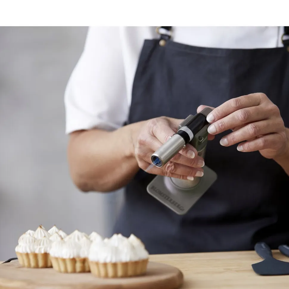Til dig som gerne vil karamellisere, flambere eller smelte på få sekunder. Med denne fine gasbrænder rammer du præcis dér, hvor sukkeret skal blive sprødt, osten skal smelte eller marengsen skal have farve. Brug den direkte på tallerkenen, i formen eller hvor det passer bedst. Gasbrænderen har elektronisk tænding, justerbar flamme og kan bruges fra alle vinkler. Den er nem at genfylde med almindelig lightergas.