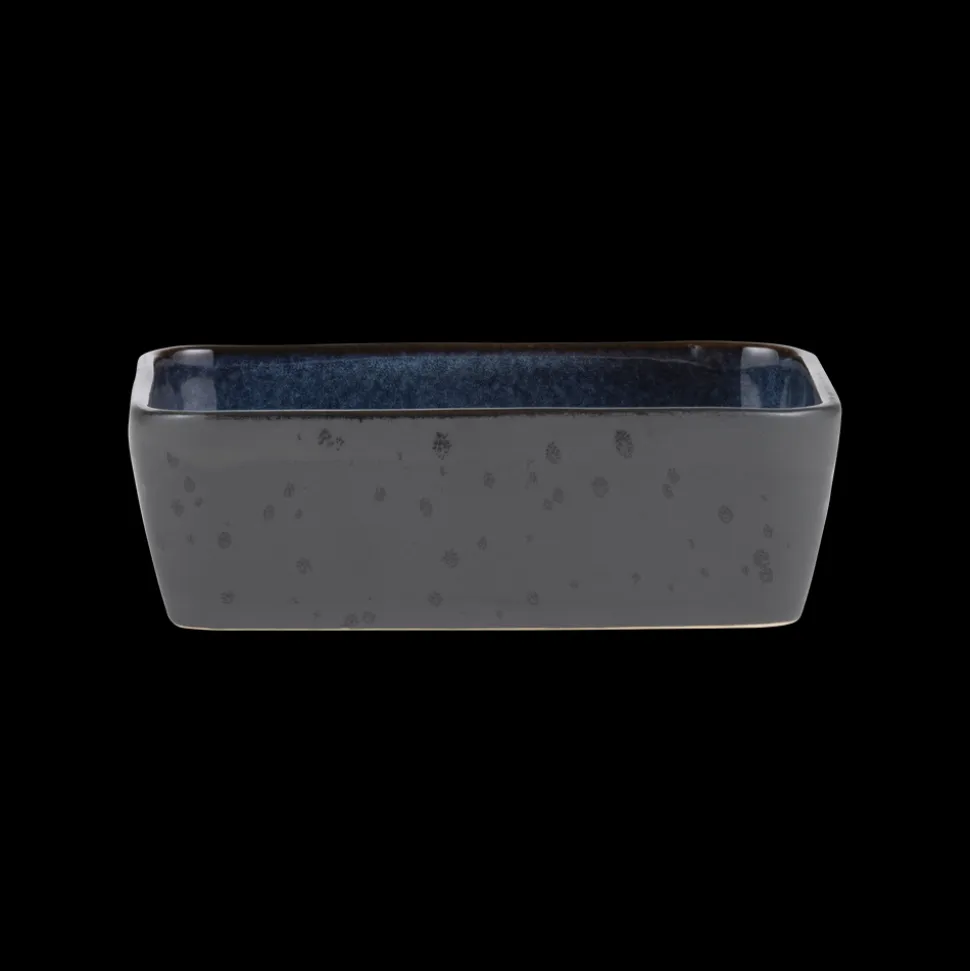BITZ’ rektangulære fad i mat, sort stentøj med blank mørkeblå glasur på indersiden måler 21 x 28 cm og er 8 cm højt. Det flotte fad fås i to størrelser og i flere fantastiske farvestillinger med en unik, reaktiv glasur, der fremhæver stentøjets glød.