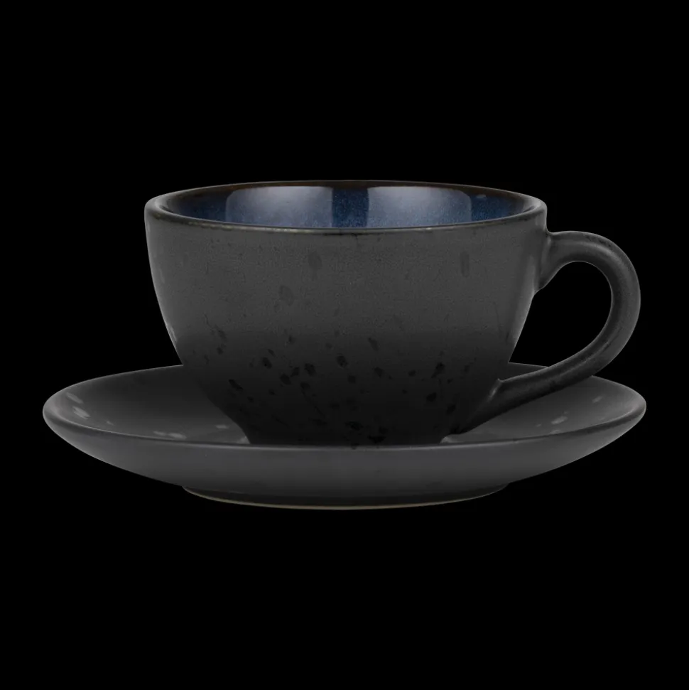Nyd din cappuccino og dine andre kaffefavoritter i den flotte BITZ Kop med underkop. Fremstillet i mat, sort stentøj med blank, mørkeblå glasur på koppens inderside. 24 cl, 6 cm høj. Velegnet til maskinopvask, mikroovn og ovn op til 220 gr.