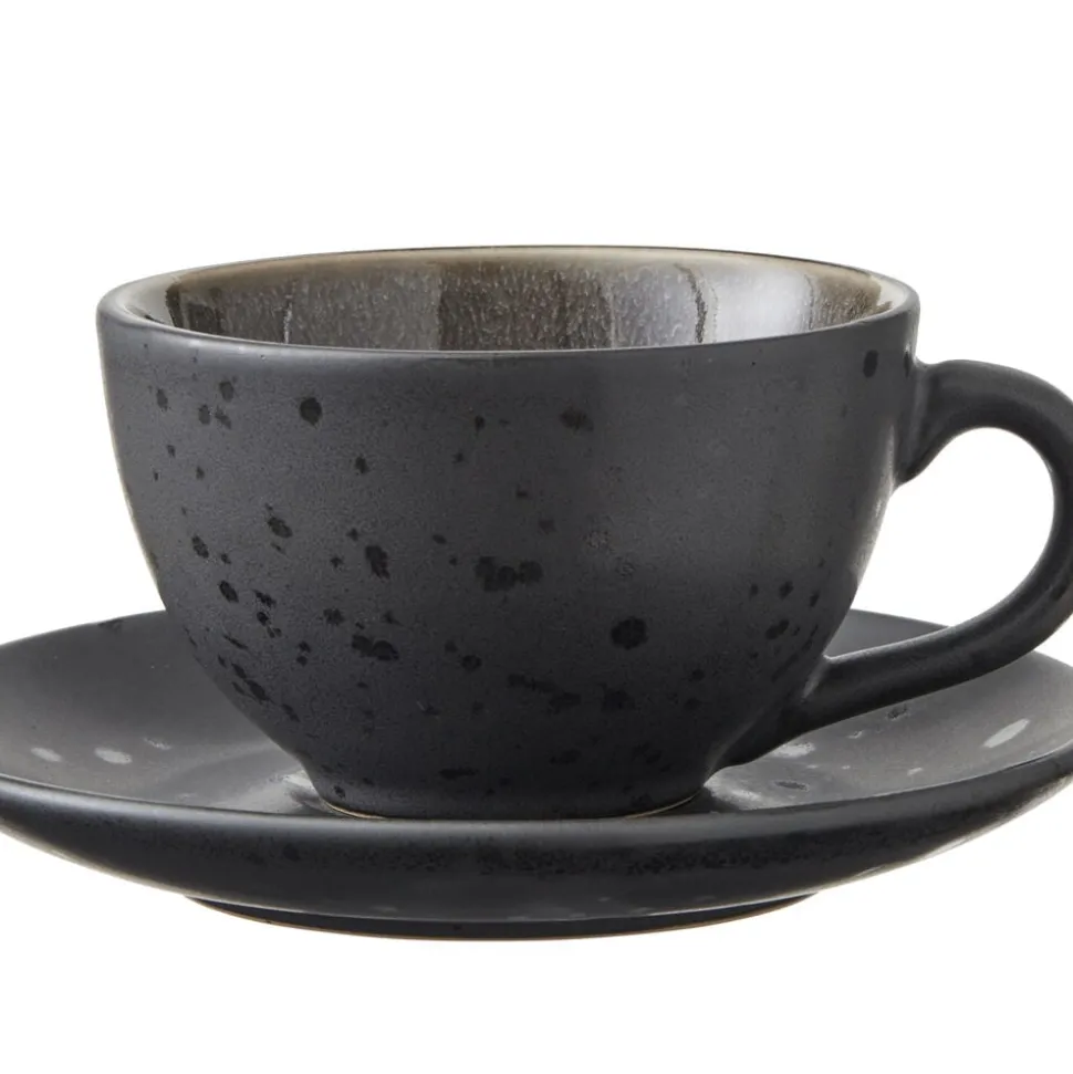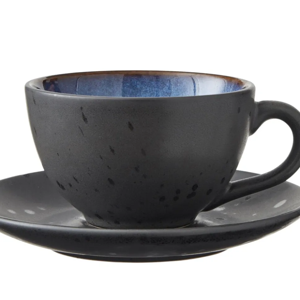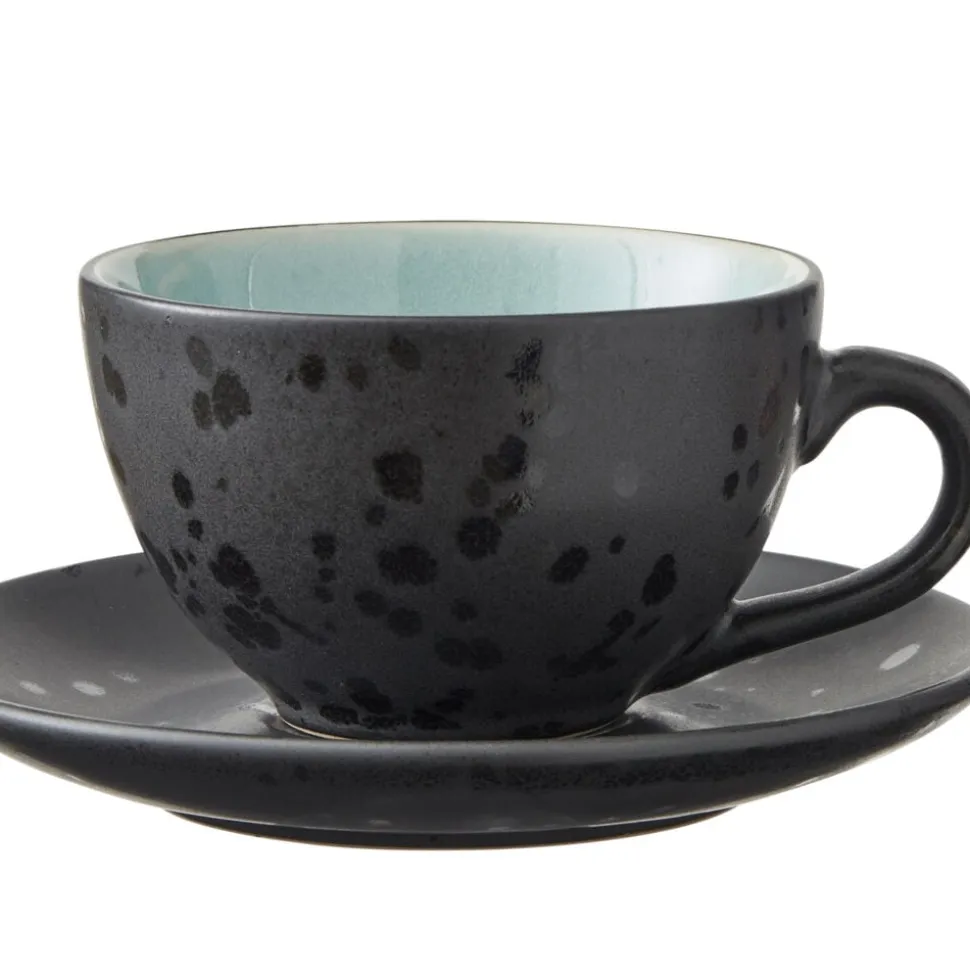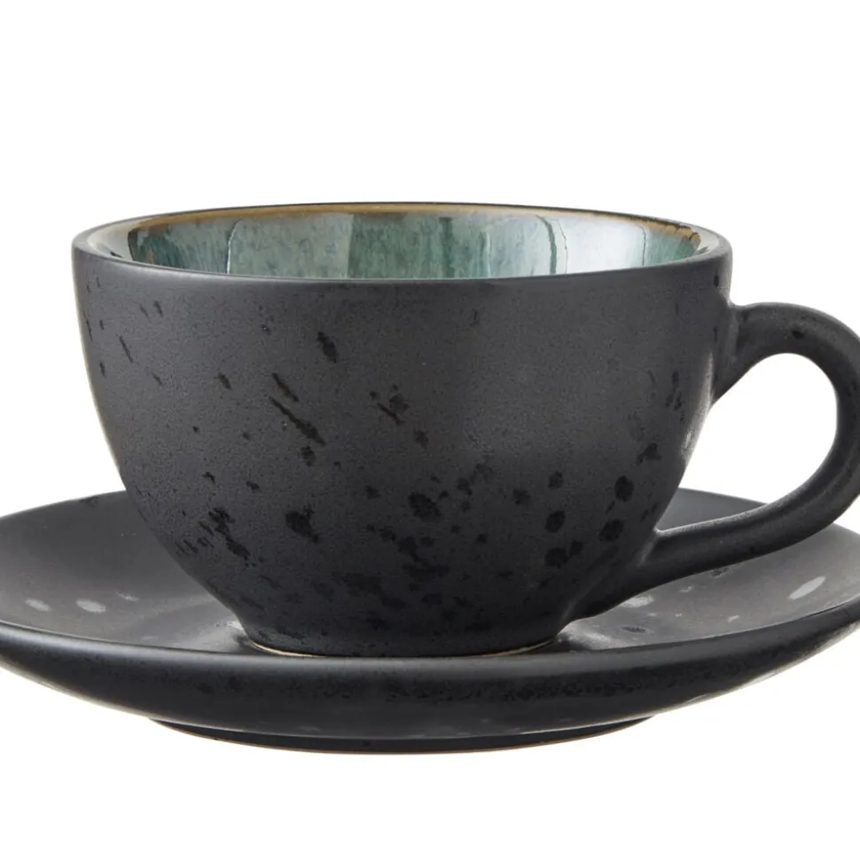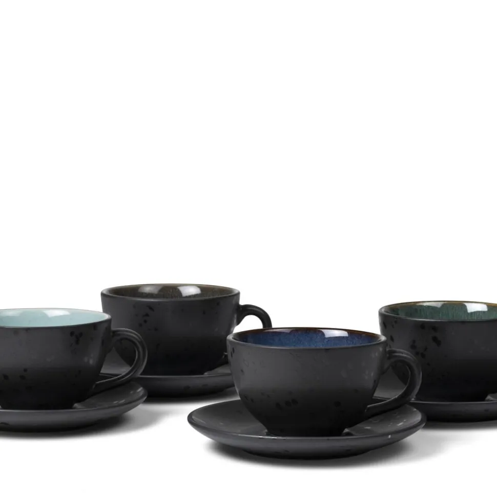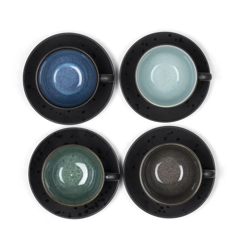 4 stk. Nyd din cappuccino og dine andre kaffefavoritter i den flotte BITZ Kop med underkop. Fremstillet i mat, sort stentøj med blank glasur i grøn, mørkeblå, lyseblå, grå på koppens inderside. 24 cl, 6 cm høj. Velegnet til maskinopvask, mikroovn og ovn op til 220 gr.