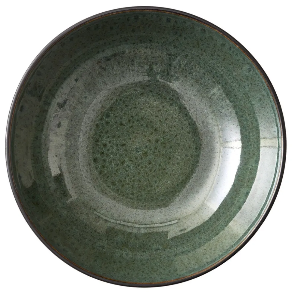 BITZ stor salatskål i sort stentøj med en glansfuld, grøn glasur på indersiden kombineret med mat reaktiv glasur på ydersiden. Skålen er perfekt til store salater og anretninger. Velegnet til opvaskemaskine, mikroovn og ovn op til 220 grader. Dia. 30 cm, højde 10 cm.