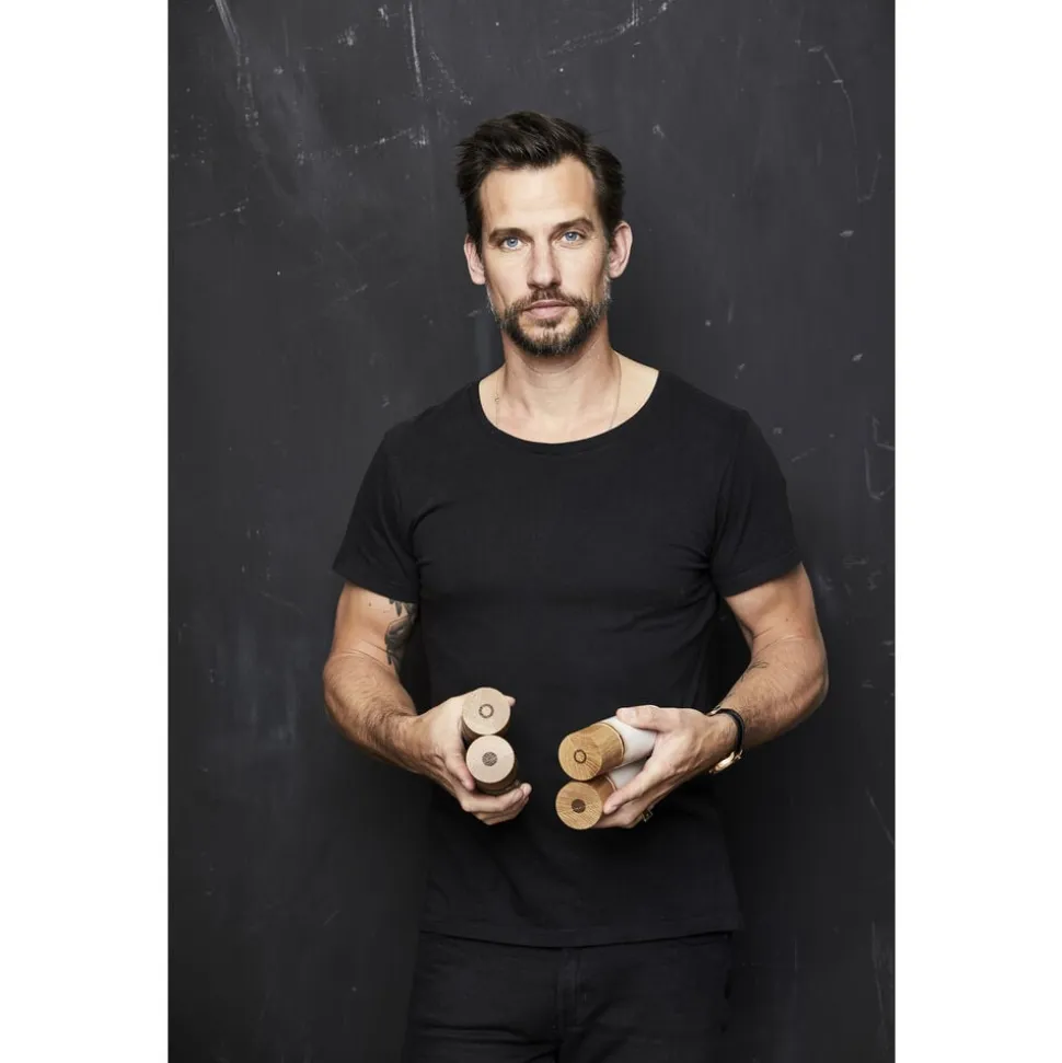 Designet er enkelt og elegant, og kværnene ligger godt i hånden. Kværnene er forsynet med keramisk kværnværk med 5 års garanti. Vi anbefaler, at egetræstoppen løbende vedligeholdes med neutral olie, så træets glød bevares.
