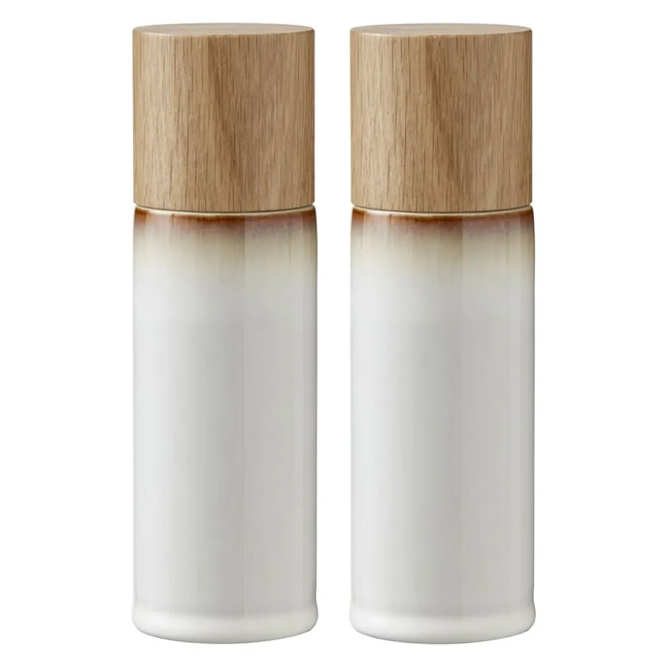 Salt- og peberkværnsæt i blankglaseret stentøj med top i egetræ. Den smukke farve passer til de øvrige produkter i BITZ’ farverige stentøjsserie, hvor den reaktive glasur giver hvert enkelt produkt sit helt unikke spil.