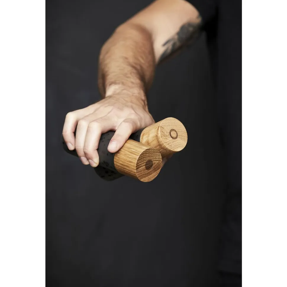 Designet er enkelt og elegant, og kværnene ligger godt i hånden. Kværnene er forsynet med keramisk kværnværk med 5 års garanti. Vi anbefaler, at egetræstoppen løbende vedligeholdes med neutral olie, så træets glød bevares.