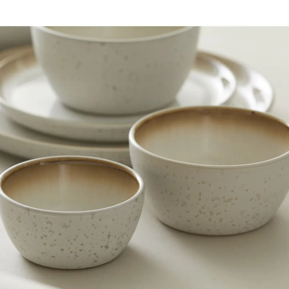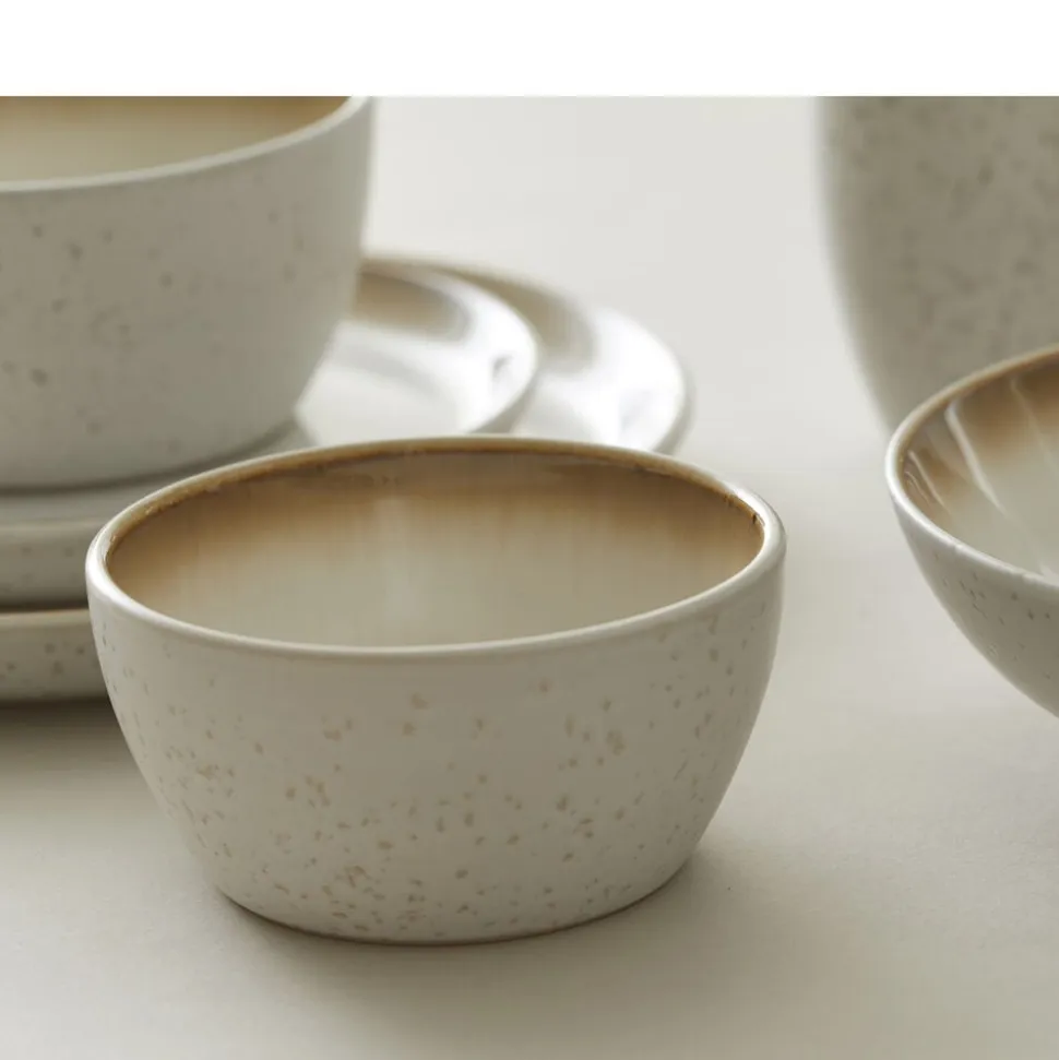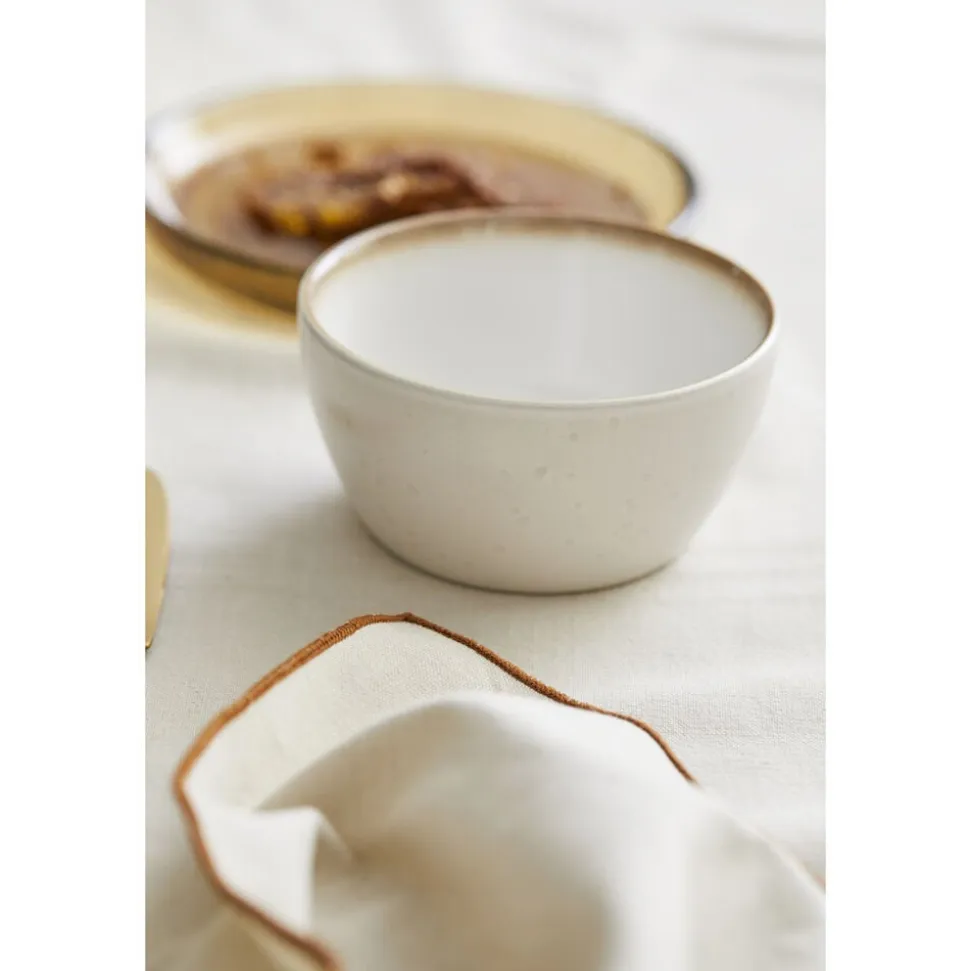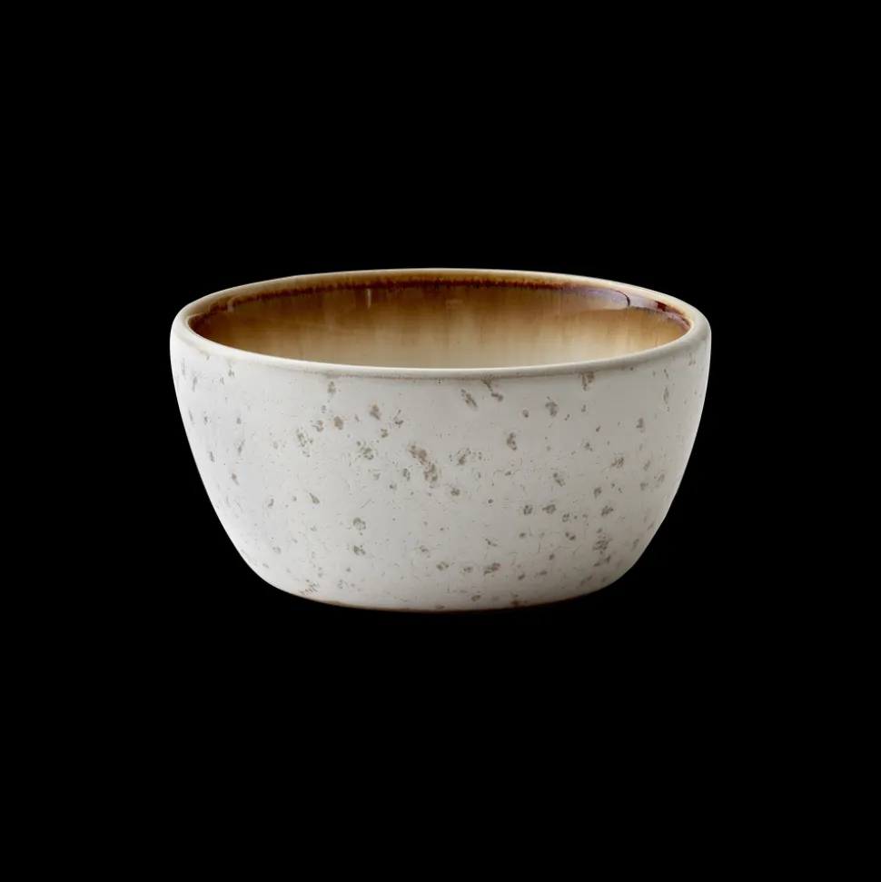 BITZ Skål i stentøj med mat creme glasur udenpå og blank cremefarvet inderside. 10 cm i diameter, højde 5 cm, en størrelse med uendelige anvendelsesmuligheder, brug den fx til oliven, nødder og snacks, dip og dressing, chokolader, bær og frugtstykker.