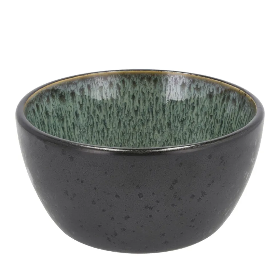 BITZ Skål fremstillet i sort stentøj. Mat sort udenpå, blank grøn indeni.