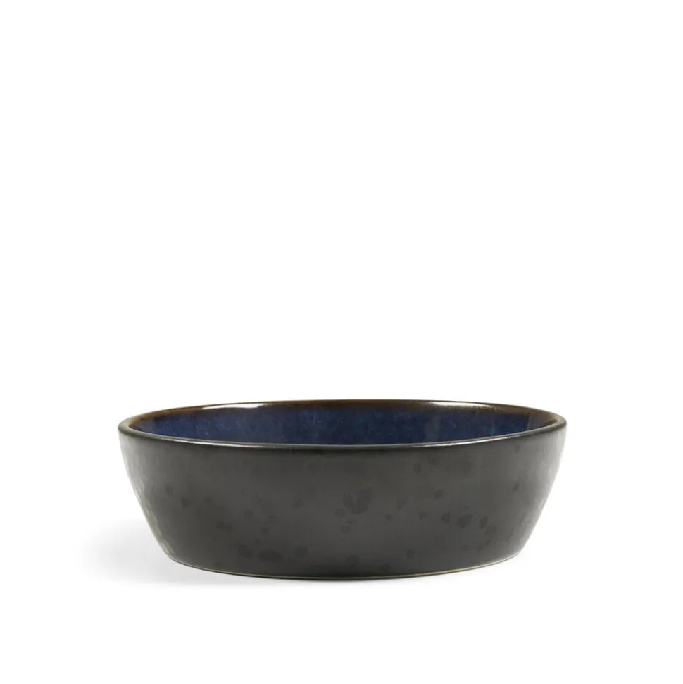 BITZ Suppeskål fremstillet i mat, sort stentøj med blank mørkeblå glasur på indersiden. Skålen er 18 cm i diameter. BITZ robuste stentøjsskåle fås i flere størrelser og i mange fantastiske farvestillinger med flot, reaktiv glasur, der fremhæver stentøjets glød.