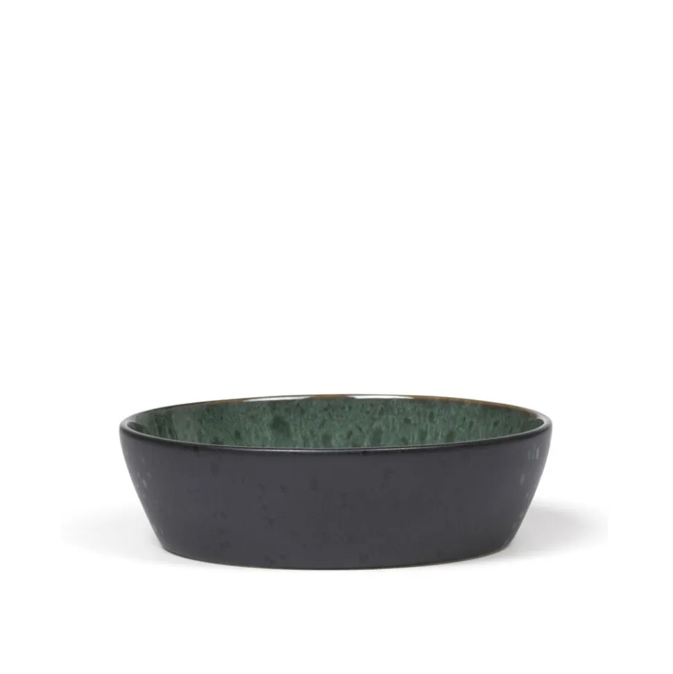 BITZ Suppeskål fremstillet i mat, sort stentøj med blank grøn glasur på indersiden. Skålen er 18 cm i diameter. BITZ robuste stentøjsskåle fås i flere størrelser og i mange fantastiske farvestillinger med flot, reaktiv glasur, der fremhæver stentøjets glød.