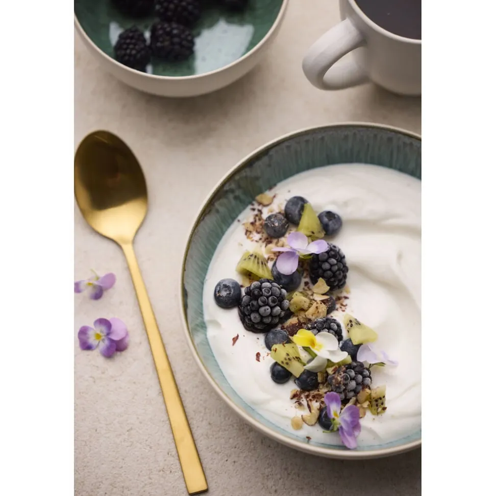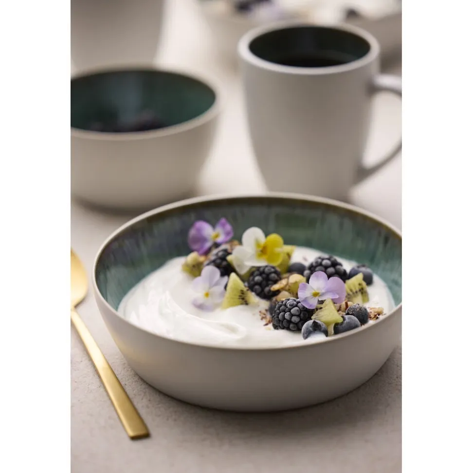 Kombinationen af den matte yderside og den reaktive, blanke, farvede glasur på indersiden gør hver enkelt produkt unikt, og du finder ikke to, der har helt samme udtryk. Velegnet til maskinopvask, mikroovn, fryser ned til minus 18 grader og ovn op til 220 grader.