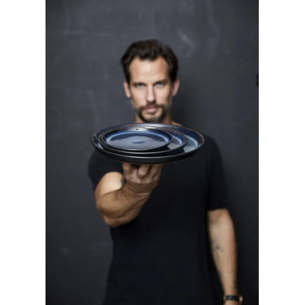 BITZ tallerken fremstillet i mat sort/blankt mørkeblåt stentøj. Dia. 17 cm.
