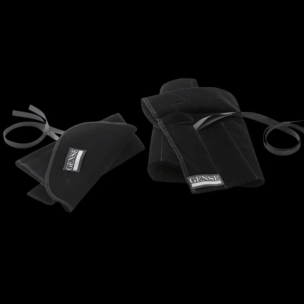Bestikpose til 12 dele udført i sort kvalitetsklæde med hvidt Gense-logo og sort stofbånd til lukning.