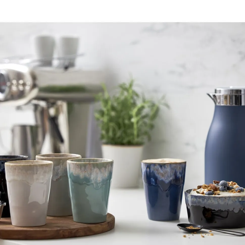 Costa Novas Gres er smukke skåle i keramik med flot glasur. Perfekt sammen med bægre fra serien Grescafé eller som iøjnefaldende skåle på det dækkede bord. Kollektionens smukke glasur er inspireret af havets bølger og fås i flere forskellige farver.