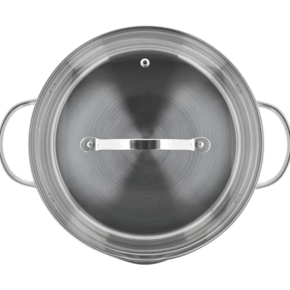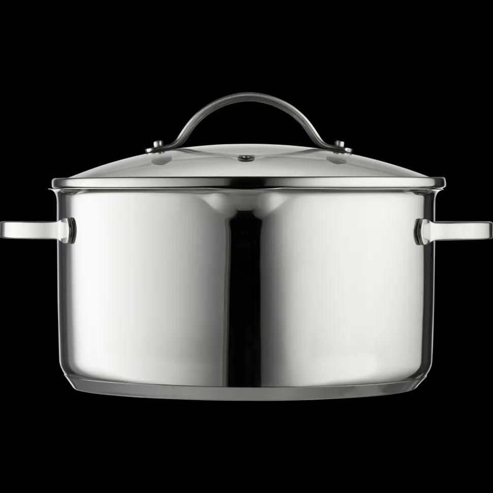Glaslåg med si-funktion på to sider af låget, hvilket sikrer, at vand kan hældes fra gryden, uden at indhold kommer med.