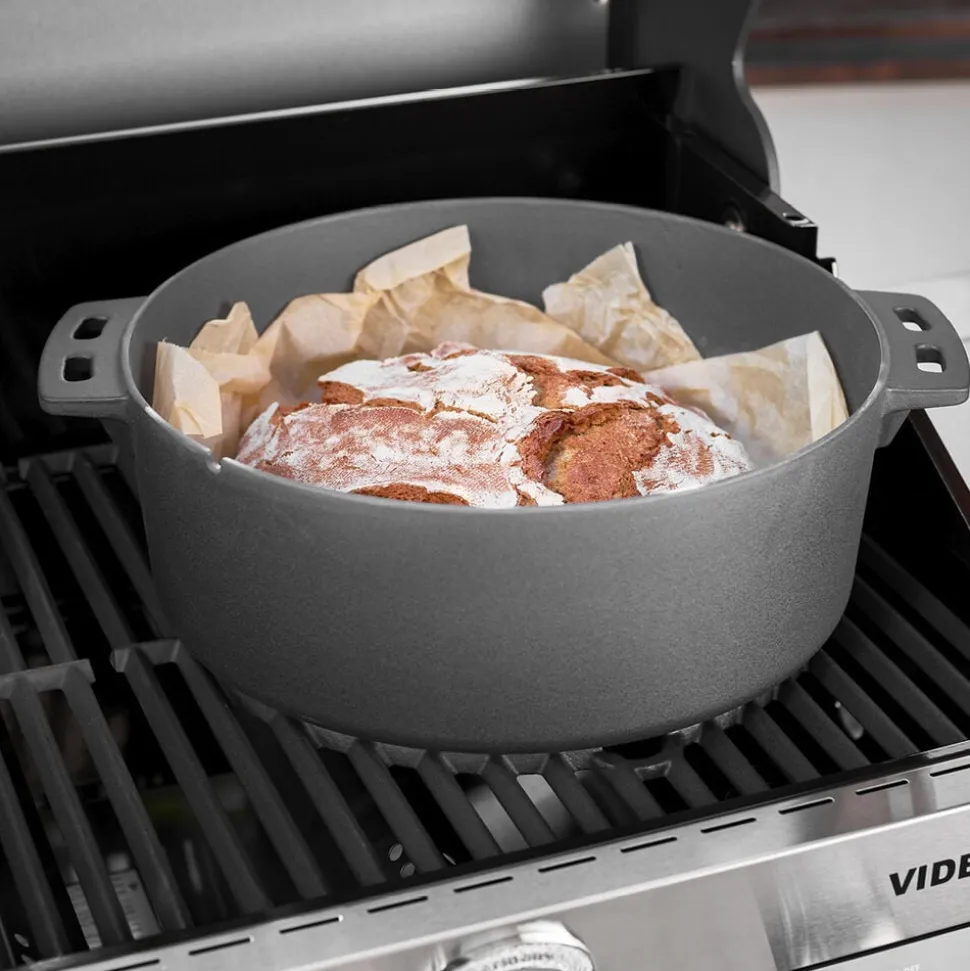 Gryde i støbejern, der passer til Rösles Vario+ grillsystem. Gryden anvendes til al slags madlavning, fx stegning og bagning. Den kan placeres direkte på ilden, på kogepladen eller på grillristen. 8,5 liter, diameter 35 cm.
