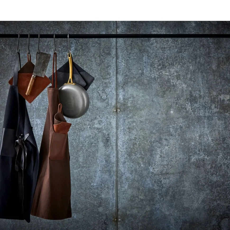 2 sorte grydelapper af kanvas og læder. Kanvas er 100 % bomuldsstof i en kraftig vævning. Det er slidstærkt og vandafvisende, hvilket gør det egnet til hverdagsbrug. Læderet er 100 % bøffellæder. Bøffellæder er slidstærkt og har stor elasticitet. Med passende pleje vil bøffellæder holde i lang tid og få patina, som fremhæver læderets skønhed. Grydelapperne har en lomme, der gør det nemt at gribe fat i fade m.m. De beskytter hele hånden, fx når du tager et varmt fad ud af ovnen.