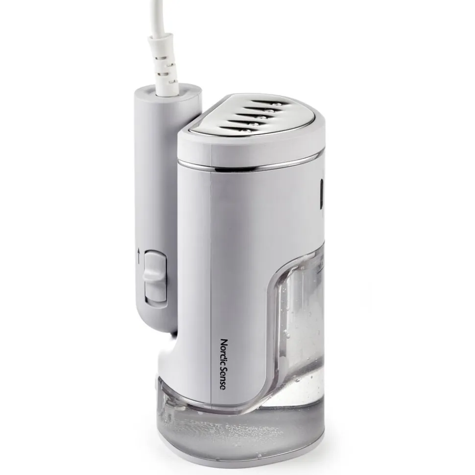Håndsteameren har et kompakt design og kan nemt foldes sammen, så den ikke fylder ret meget, når du fx skal have den med ud at rejse. Der medfølger en varmeresistent opbevaringspose.