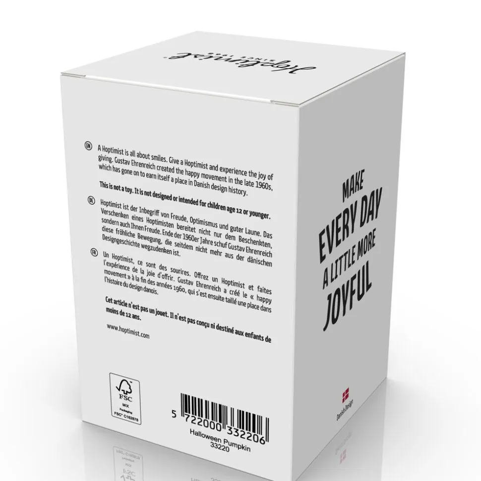 Når mørket falder på, og månen kaster sit lys gennem efterårsnatten, begynder den lille Halloween-Hoptimist sin dans på hylden. Med et lumsk smil og små, spjættende hop spreder den glæde og sjov blandt græskarlygter og spindelvæv.