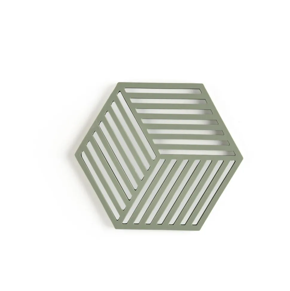 Hexagon bordskånerne i silikone er så grafisk dekorative, at de indbyder til at lægge en flok ud i hele bordets længde uden at stille noget på dem. De er varmebestandige op til 250 °C og kan vaskes i opvaskemaskine. 16 x 14 x 0,9 cm.