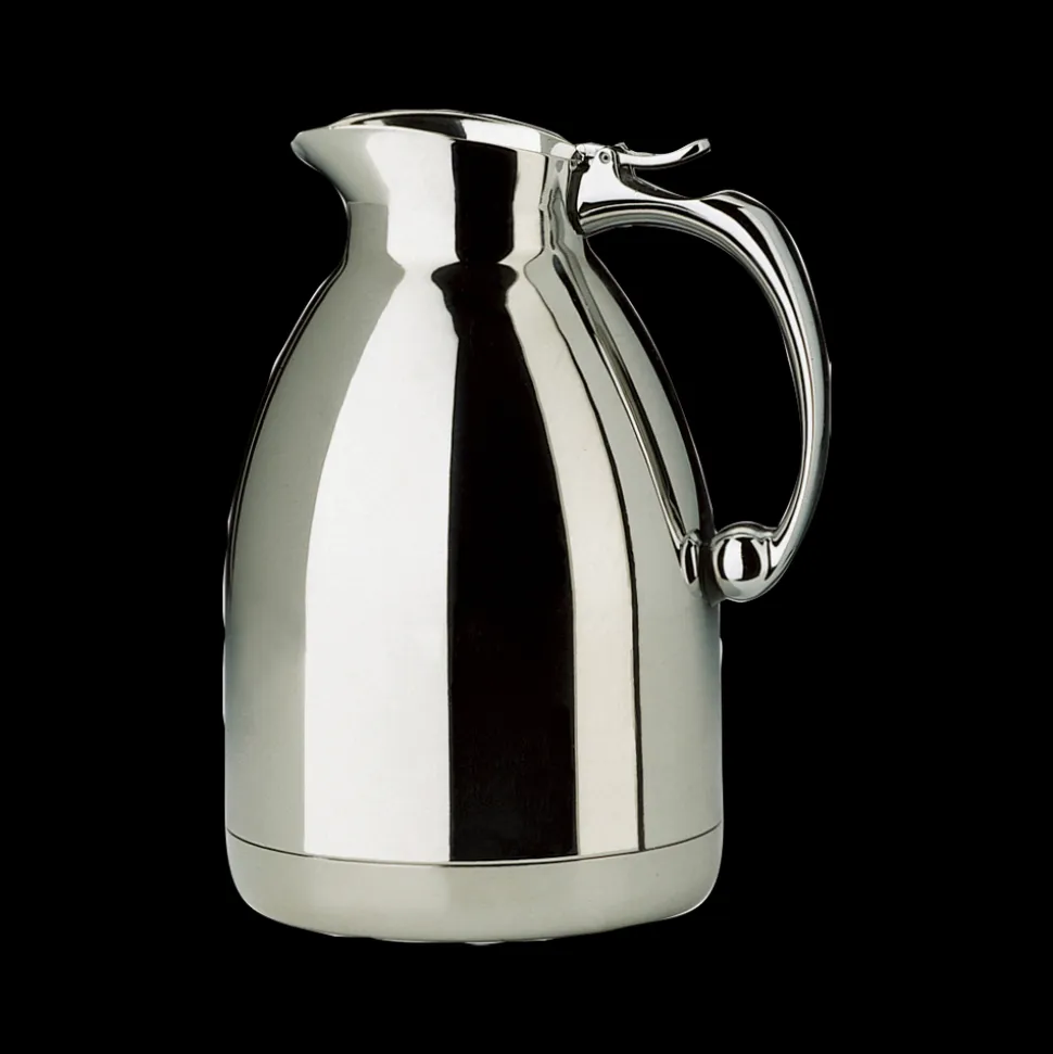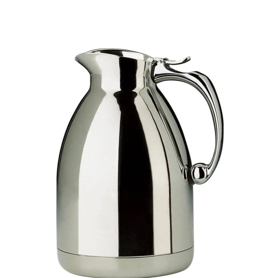 Hotello er en elegant termokande, der er yderst robust og designet til at klare de høje krav til robusthed og hygiejne på hoteller, i restauranter m.m. Rustfrit stål i høj kvalitet. En fuldstændig hygiejnisk termokande uden hjørner, kanter eller fordybninger, hvor snavs kan gemme sig. Termokanden har ingen dele i plastik eller silikone og tåler derfor termisk desinfektion. Dobbeltvægget indsats af rustfrit stål, der er yderst robust og holdbart. Unikt og praktisk hældesystem. Kan betjenes med én hånd. Holder varmt i 8 timer og koldt i 24 timer. Ergonomisk metalhåndtag. Tåler opvaskemaskine. Designet af Martin Hauenstein.