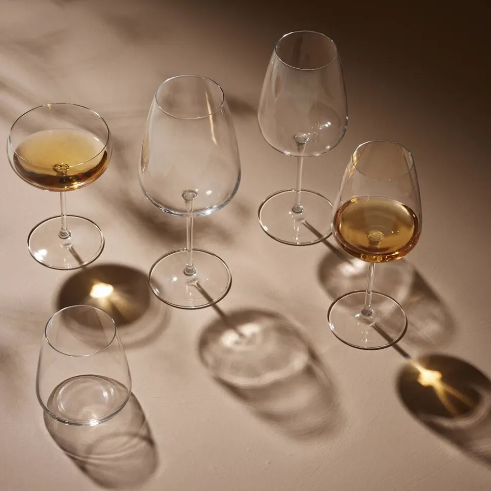 Luigi Bormiolis elegante serie I Meravigliosi – De vidunderlige – indeholder en række lette og velafbalancerede glas til vin og bar. Glasset er holdbart krystalinglas med fyldig og kraftfuld klang. Det er ultraklart og holder sig glansfuldt og transparent i mange år Den tynde og elegante stilk er forstærket med titanium. Kan vaskes i opvaskemaskine, og vi anbefaler et vaskeprogram på maks. 55 grader.