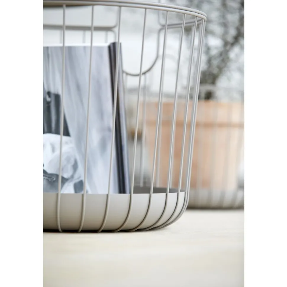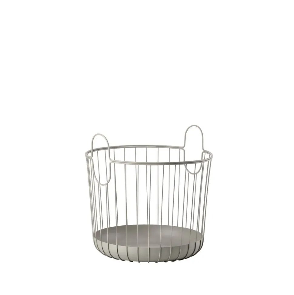 Flot metalkurv til håndklæder eller vasketøj i badeværelset, puder, tæpper og magasiner i stuen – eller til store grønne planter overalt i boligen. Kurvene fås i to størrelser, som kan stables. Det er lækkert interiør, som giver øjet ro.