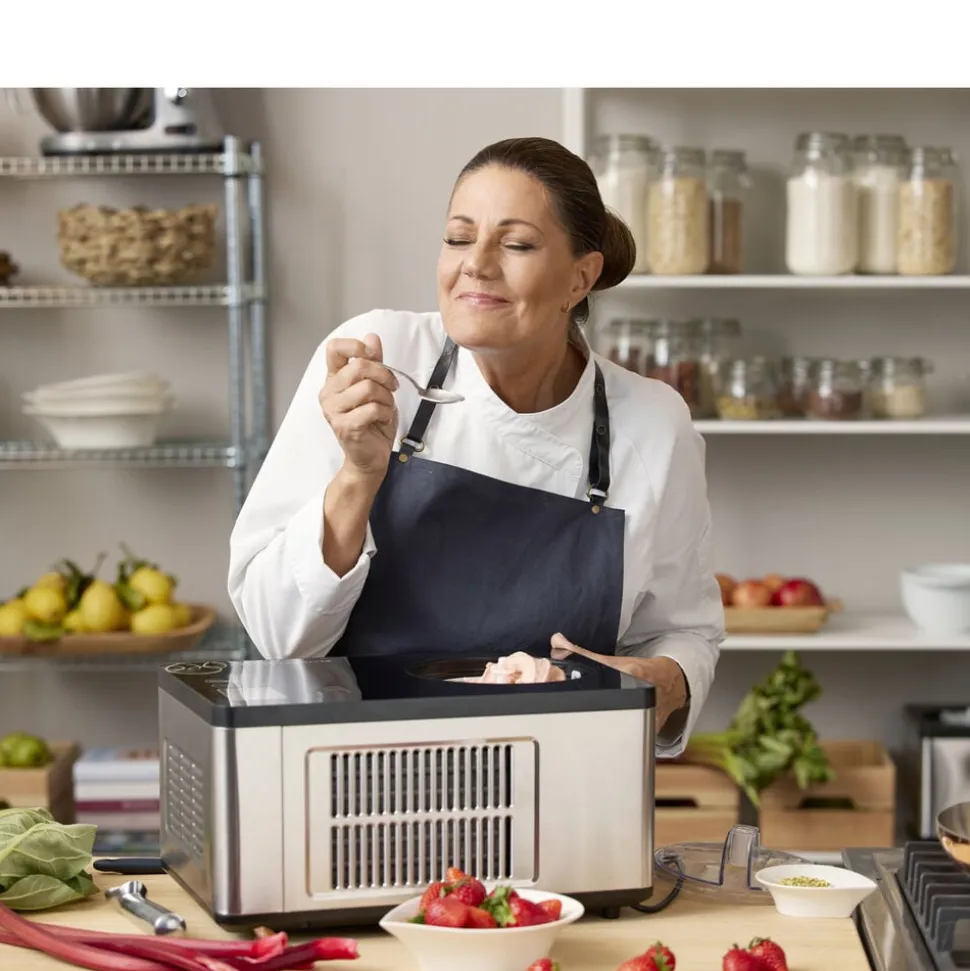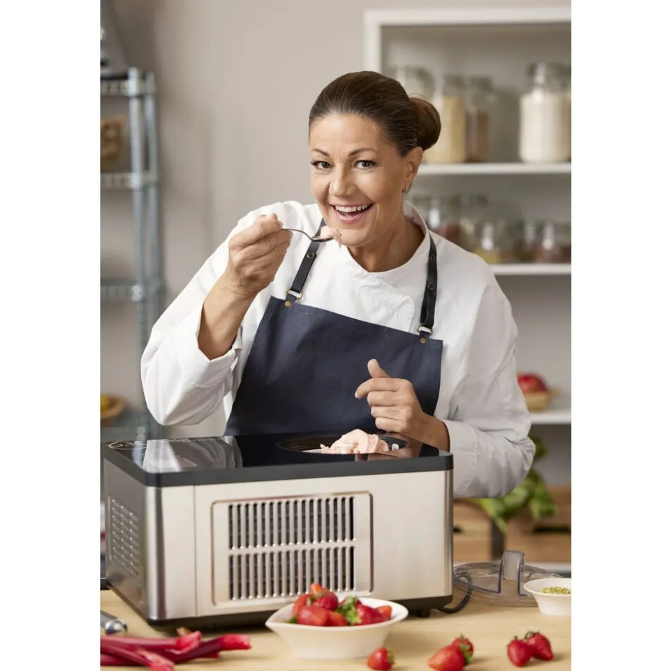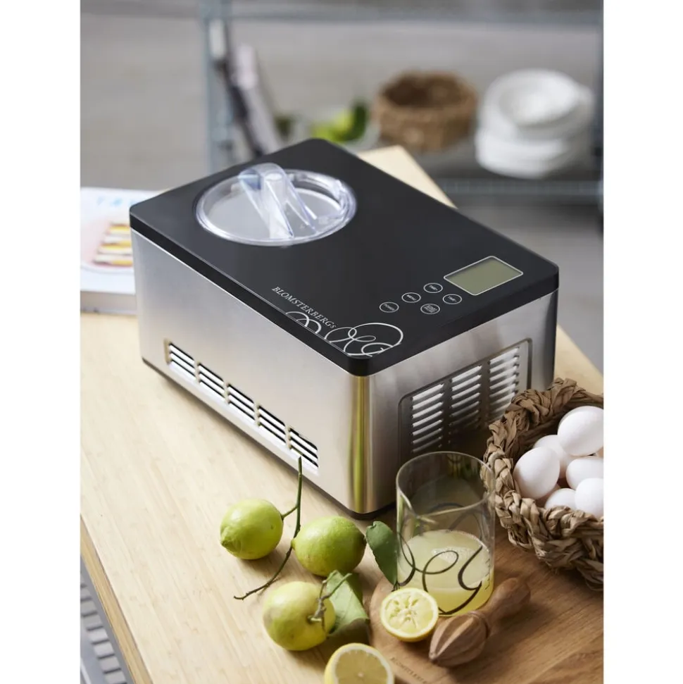 Lav lækre hjemmelavede sorbeter og legerede iscremer til familien på under en time. Blomsterbergs ismaskine har indbygget kompressor til køling, så du ikke behøver at nedfryse røreskålen i forvejen. 2 l skål, LED-display og touch-betjening. 180 watt.