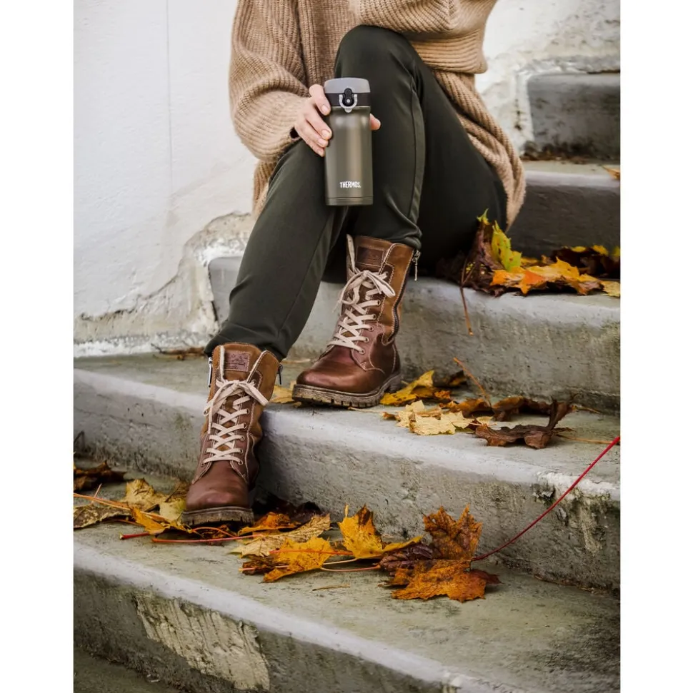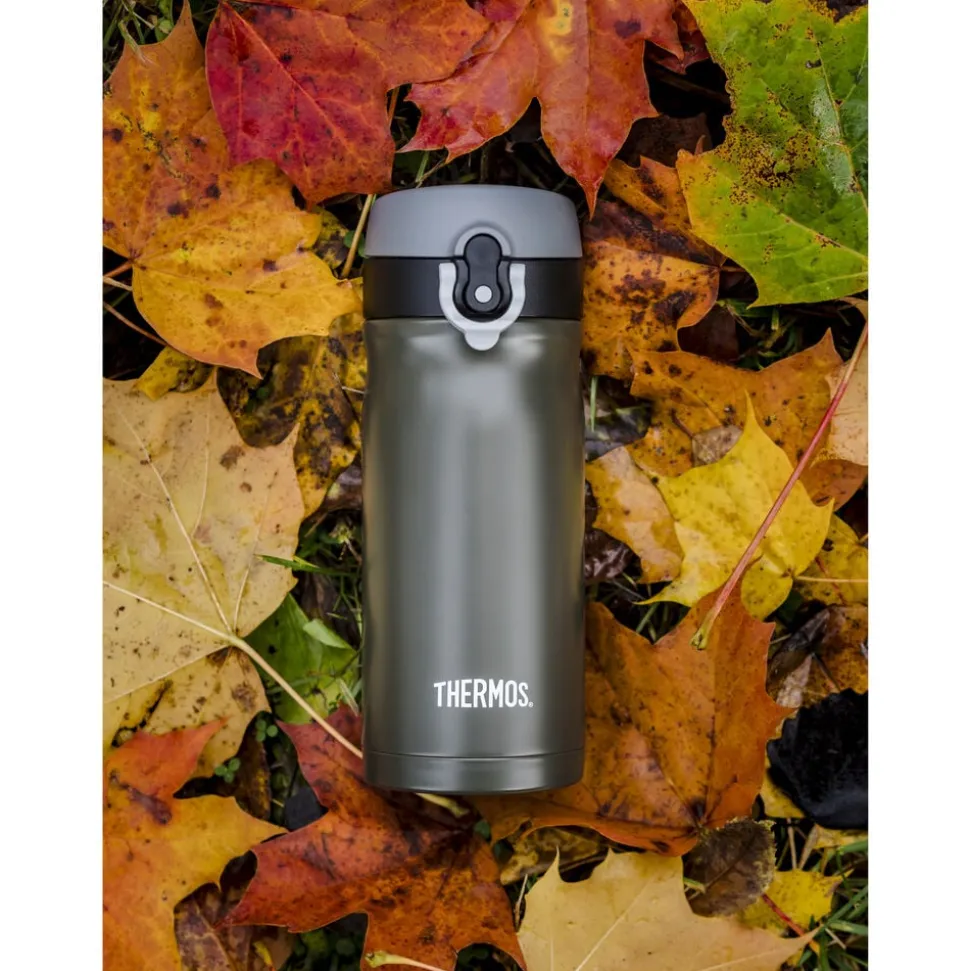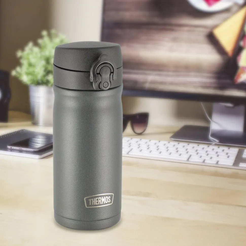 Thermos JMY 350 ml er en smart blanding af en lille termoflaske og en termokop fremstillet i rustfrit stål med et drikkelåg. Kan bruges til både til kolde og varme drikke. Holder indholdet varmt i op til 9 timer og koldt i op til 24 timer.