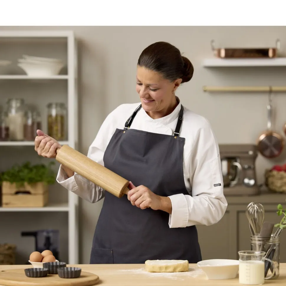 Kagerullen er udstyret med smarte kuglelejer, som sørger for, at den ruller let og lydløst. Brug den til det meste – fra småkager og tærter til pizza, knækbrød, marcipan og fondant. Trædelen på varen er FSC®-certificeret egetræ (FSC-C166612). Håndopvask anbefales.