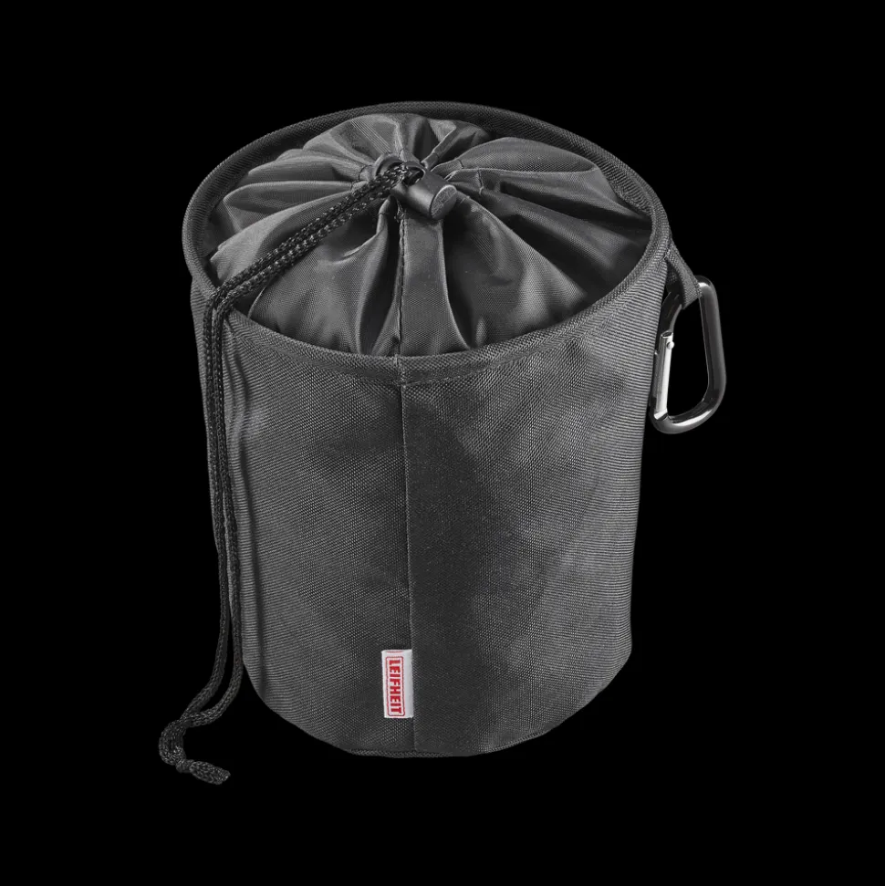 Rummelig klemmepose af tætvævet vejrbestandigt materiale med plads til op til 100 tøjklemmer. Holder klemmerne rene og klar til brug. Posen har snørelukke og karabinhage, så den kan hænge på tørresnoren eller et andet praktisk sted og være lige ved hånden.