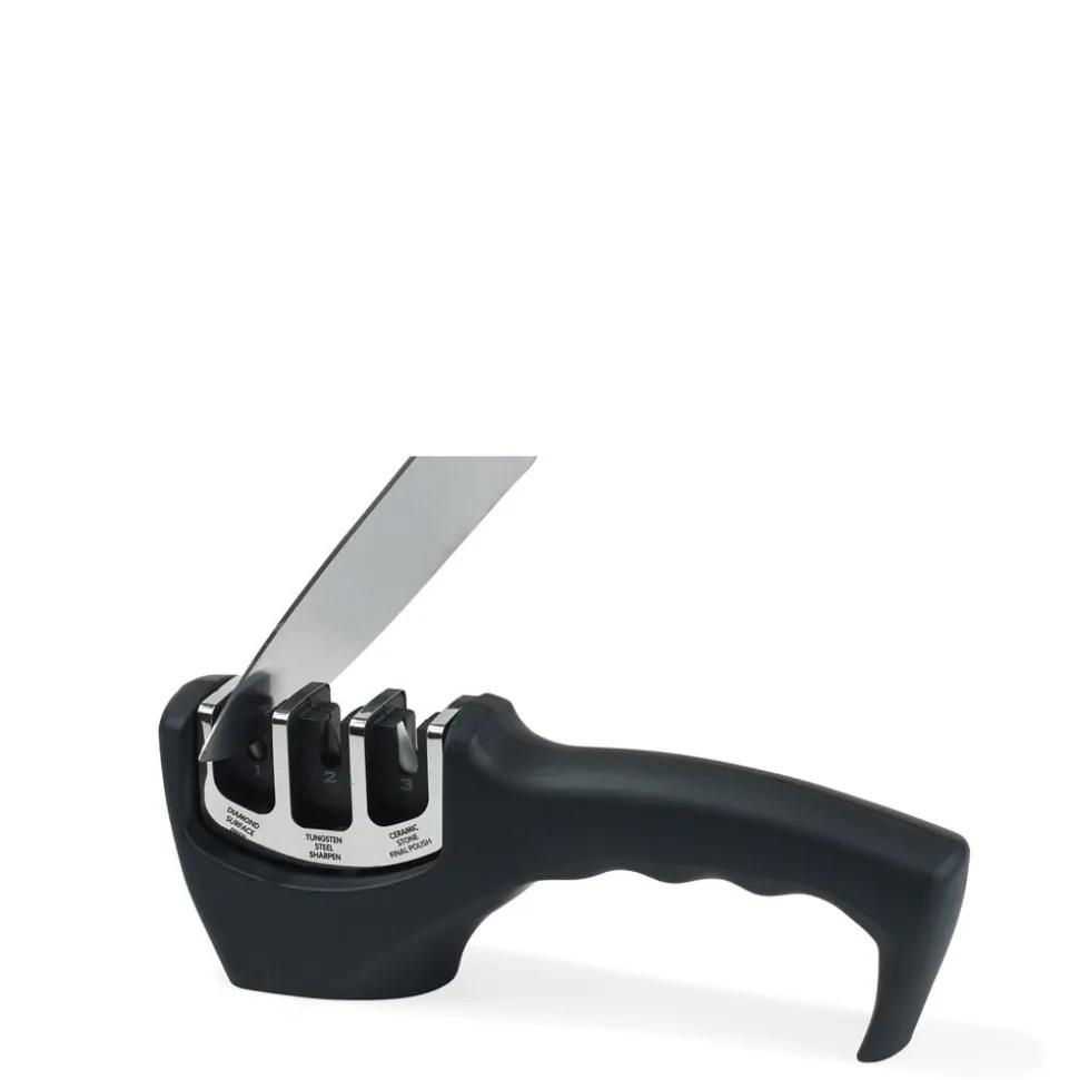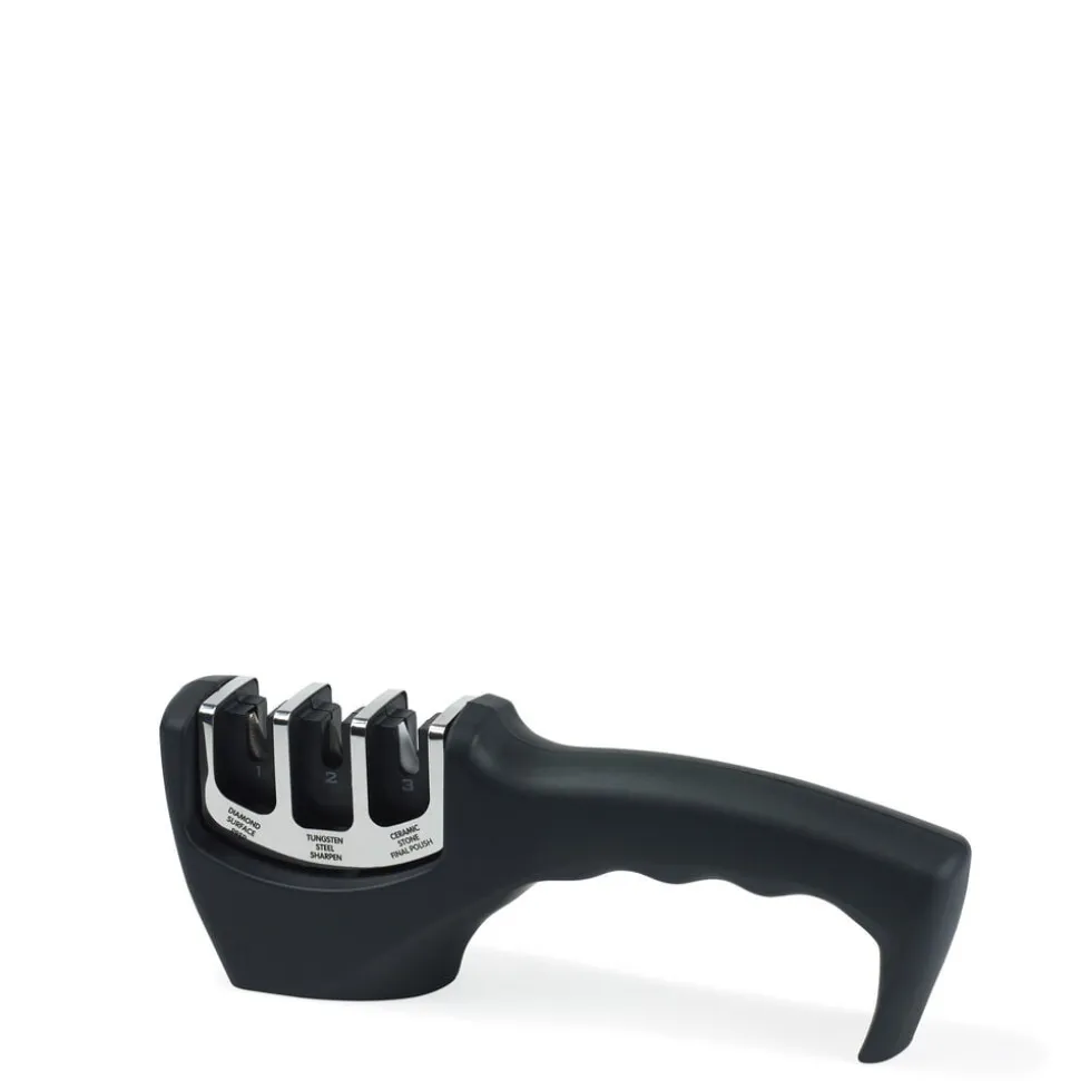En knivsliber er uundværlig i køkkenet og nem at bruge. Den genopretter og sliber hurtigt dine knive i tre nemme trin. Denne sliber har et ergonomisk greb, der giver et godt, stabilt greb under slibning. Anti-slip områder under bunden sikrer at sliberen ikke skrider på bordet.