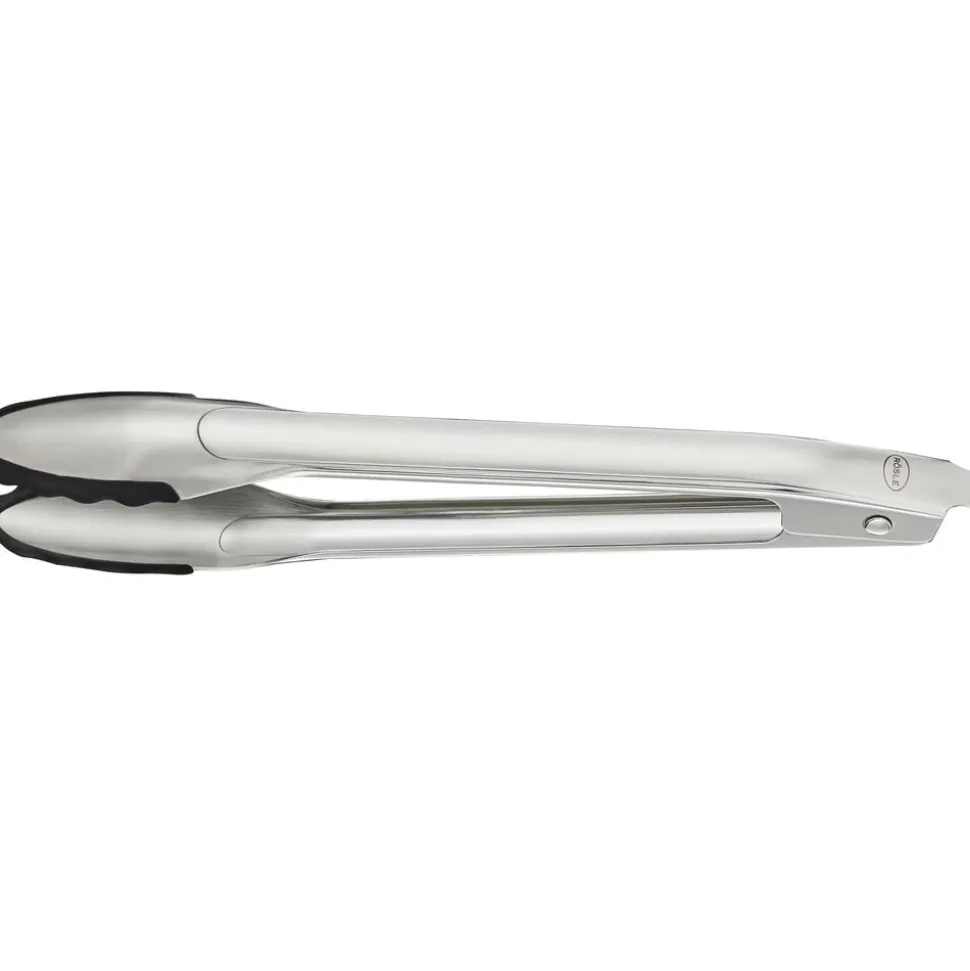 RÖSLE køkkentang med patenteret åbnemekanisme, der gør det muligt at åbne og låse tangen med kun én hånd. Silikonebelægningen forhindrer ridser i kogegrej med belægning eller rustfrit stål. Tåler temperaturer op til 260 °C. Tåler opvaskemaskine.