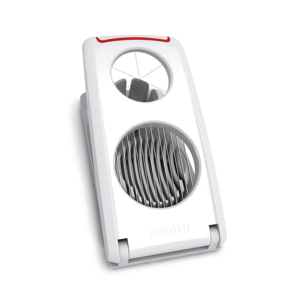 Kan dele æggene i ovale og runde skiver samt både. Let at rengøre, med rustfrit stål skære tråd. Også egnet til champignon og kogte kartofler.