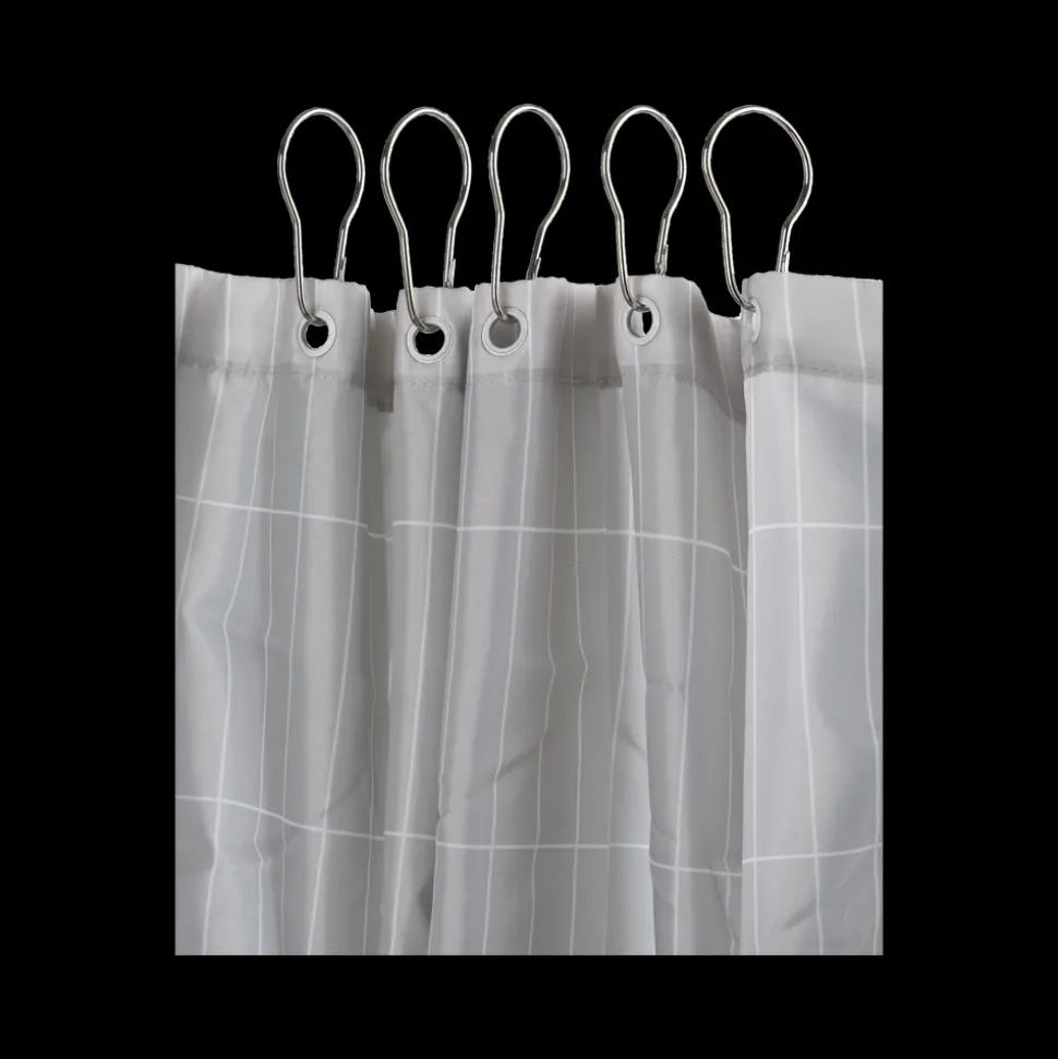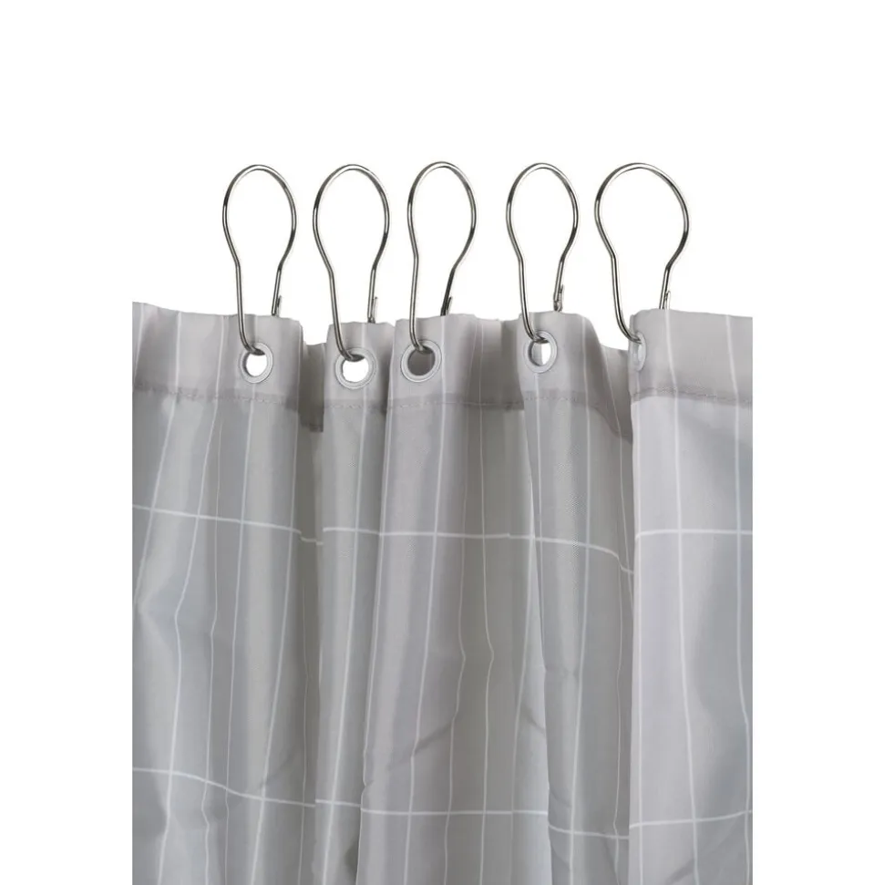 Kroge til badeforhæng. Sæt med 12 sølvfarvede metalkroge. 4,2 x 7,2 cm.