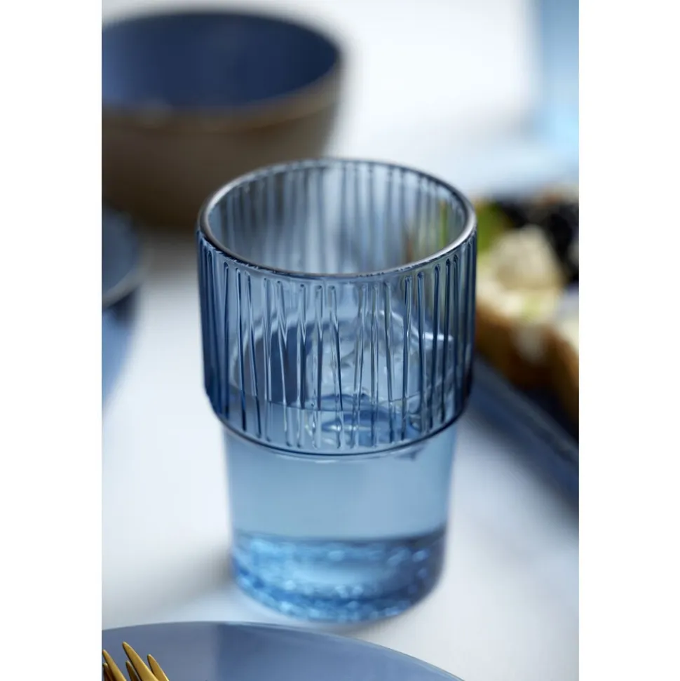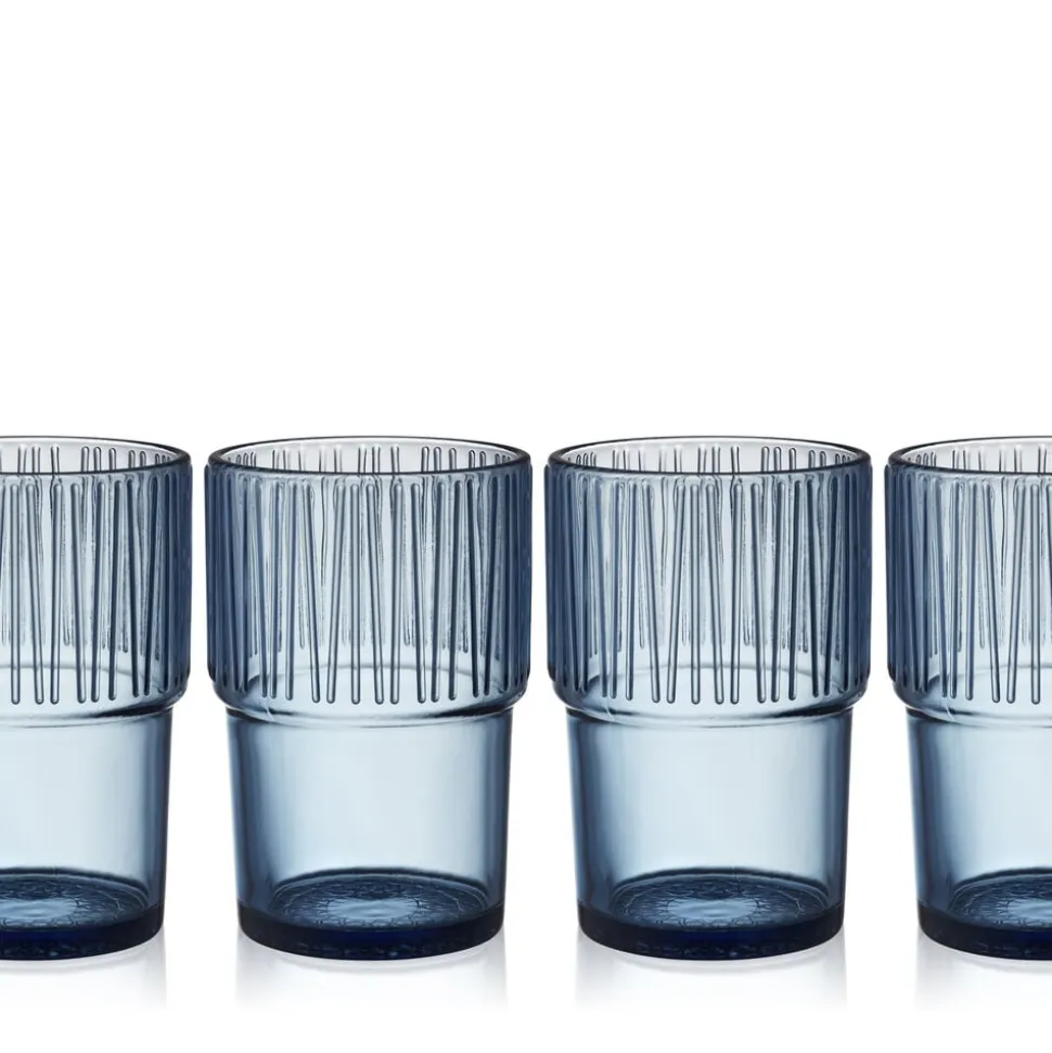 4 stabelbare caféglas, 38 cl, i gennemfarvet glas til både kolde og varme drikke. Nyd caffe latte, te, chai latte, varm kakao og meget andet af de smukke og solide glas, der gør hverdagen lidt skønnere. Velegnet til opvaskemaskine. Når du køber fra Kusintha-kollektionen, støtter du udsatte børn i verdens fattigste områder.