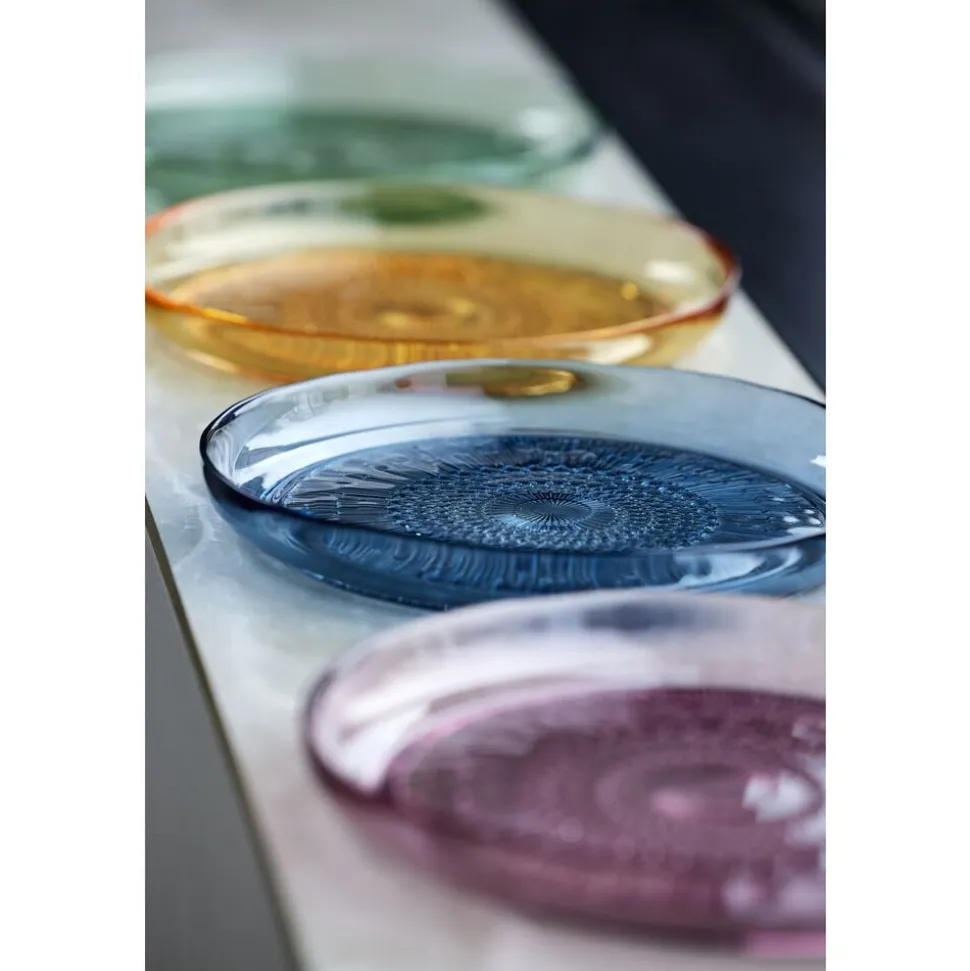 Dæk op med flotte tallerkener i gennemfarvet glas. Brug dem til forretter, salat, desserter, kager eller som et lille serveringsfad. Når du køber fra Kusintha-kollektionen, støtter du samtidig udsatte børn i verdens fattigste områder.