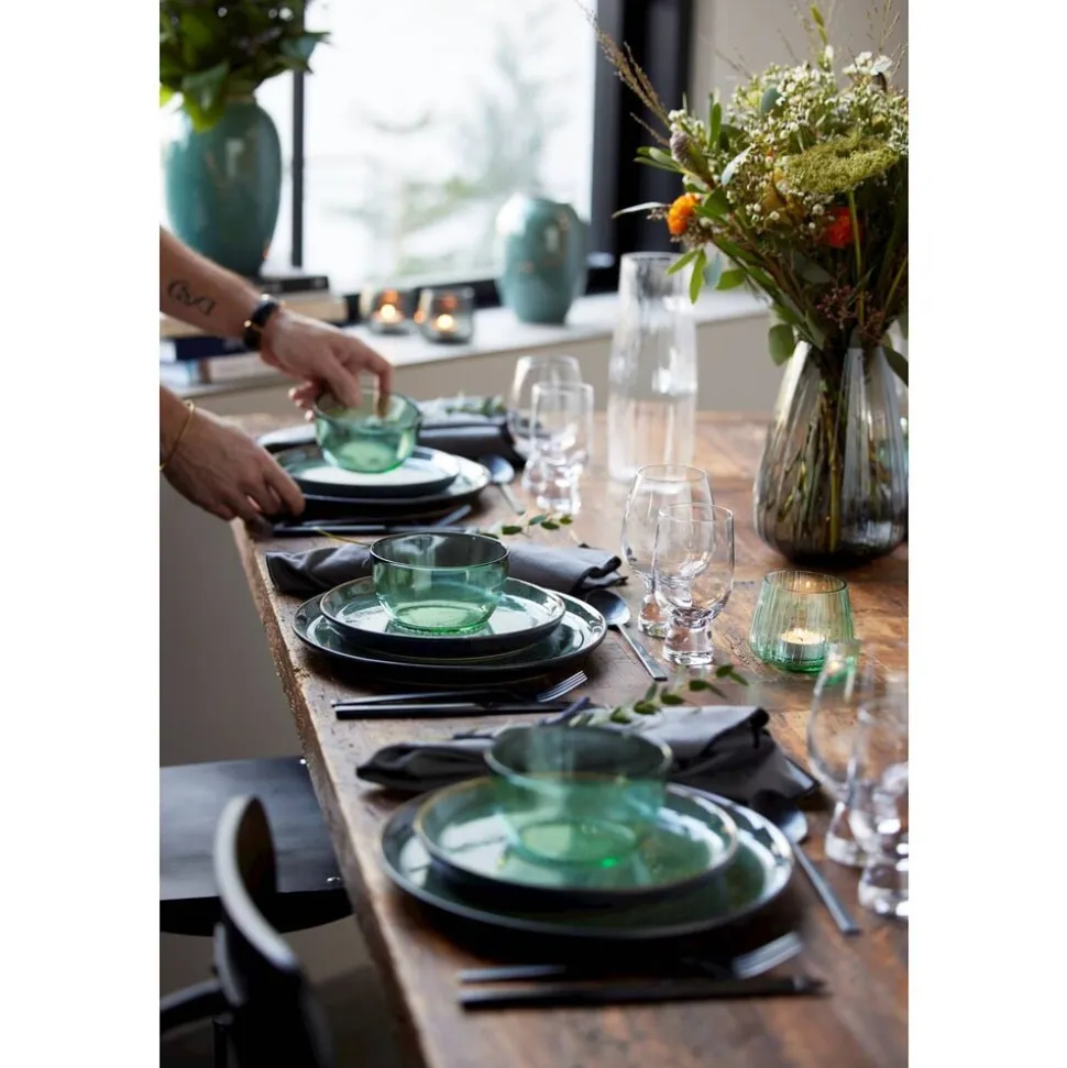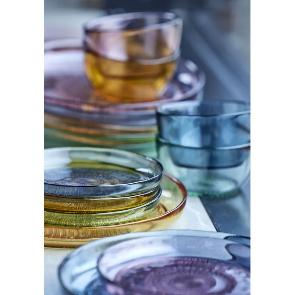 Flotte skåle i gennemfarvet glas med den perfekte størrelse til alting – fx snacks, morgenmad og kager. De fås i farverne grøn, amber, pink og blå, og når du køber fra Kusintha-kollektionen, støtter du samtidig udsatte børn i verdens fattigste områder.