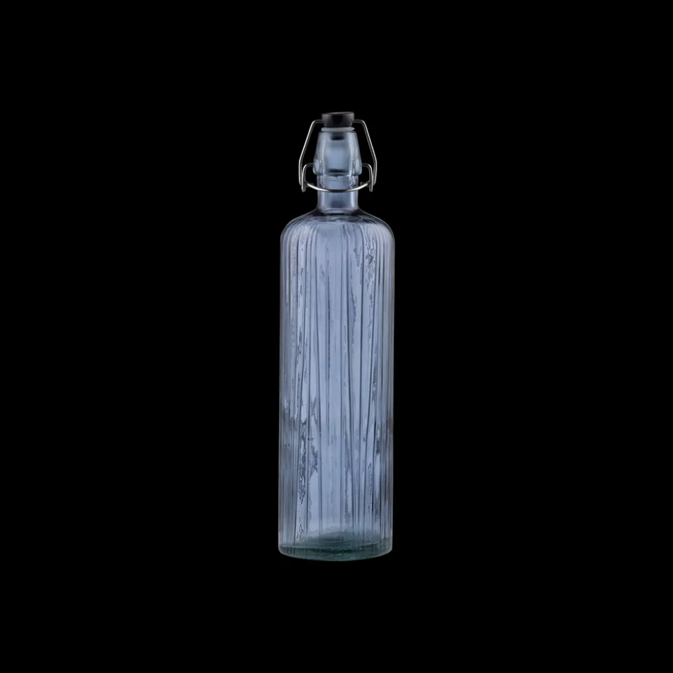 Flot vandflaske i glas med et lækkert, rustikt udtryk. Flaskens patentlukning har en keramikprop med blank, reaktiv glasur i en blå farve, der passer til glassets toning. Håndopvask anbefales. Ved køb af flasken støtter du udsatte børn i verdens fattigste områder.