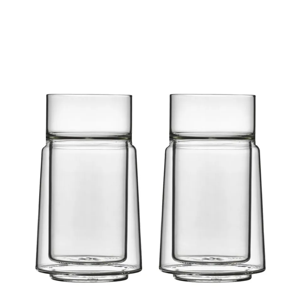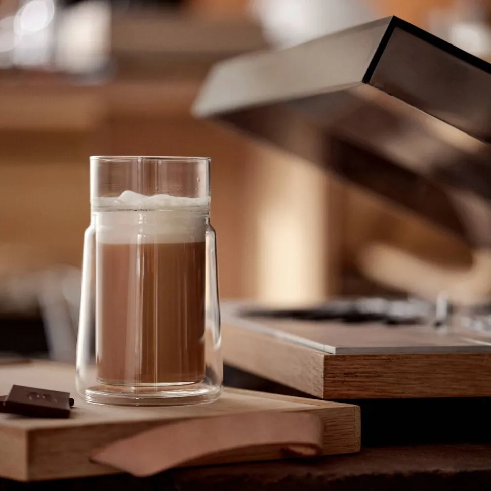 Glassene kombinerer elegant en dobbeltvægget krop med en enkeltvægget kant. Den tynde kant sikrer en behagelig drikkeoplevelse, mens dobbeltvæggen sørger for, at drikken bevarer den perfekte temperatur og beskytter dine fingre mod varme.