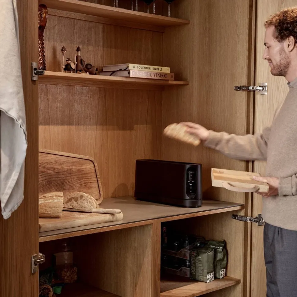 Jacob Jensens Long Slot brødrister er skabt til at løfte din morgenrutine til et nyt niveau. Det elegante design indeholder et display, der vækkes til live, når din hånd nærmer sig, ligesom det slukker, når brødristeren ikke er i brug. Brødristeren kan placeres enten langs en væg eller stå fritstående med displayet altid let tilgængeligt.